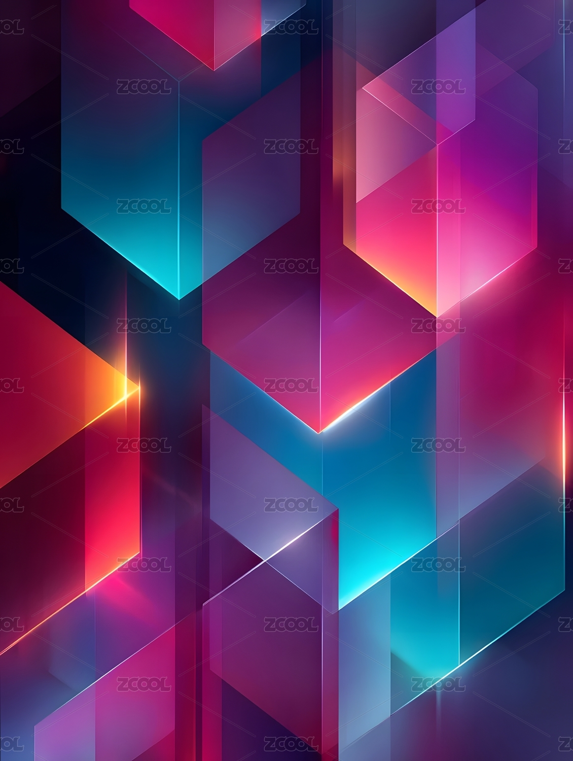 3D炫彩几何透明玻璃背景壁纸