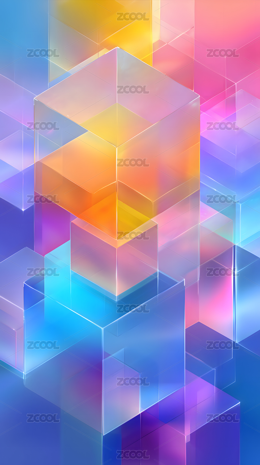 彩色透明方块的抽象艺术