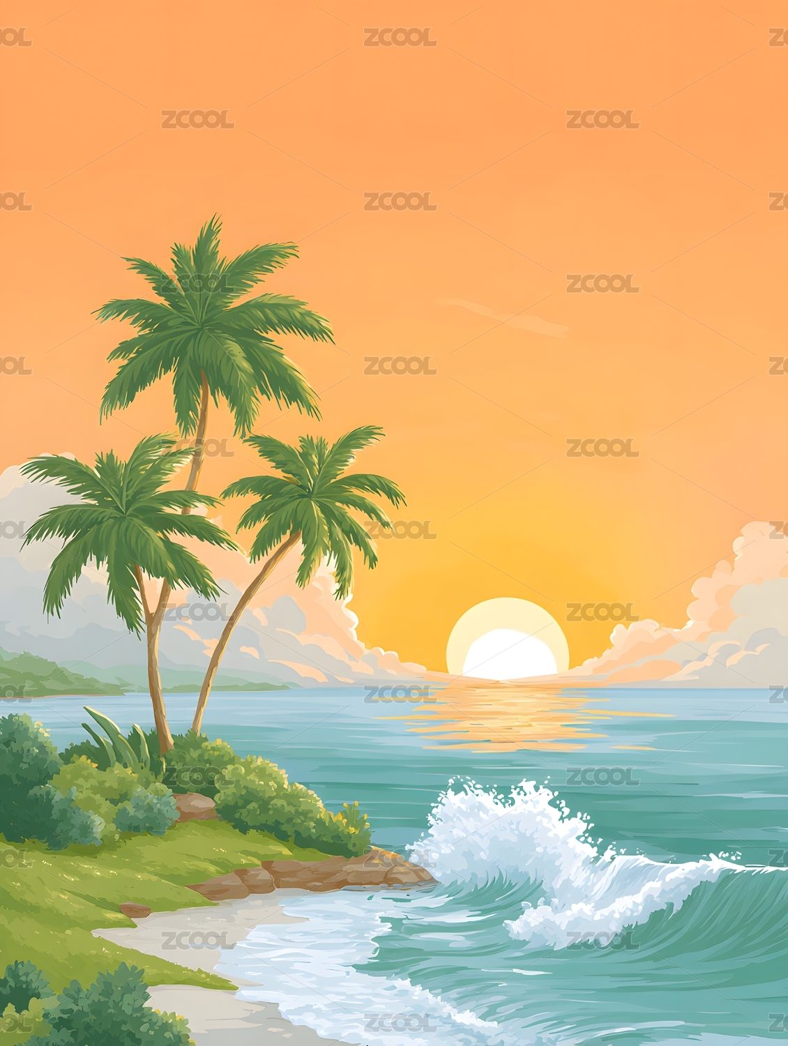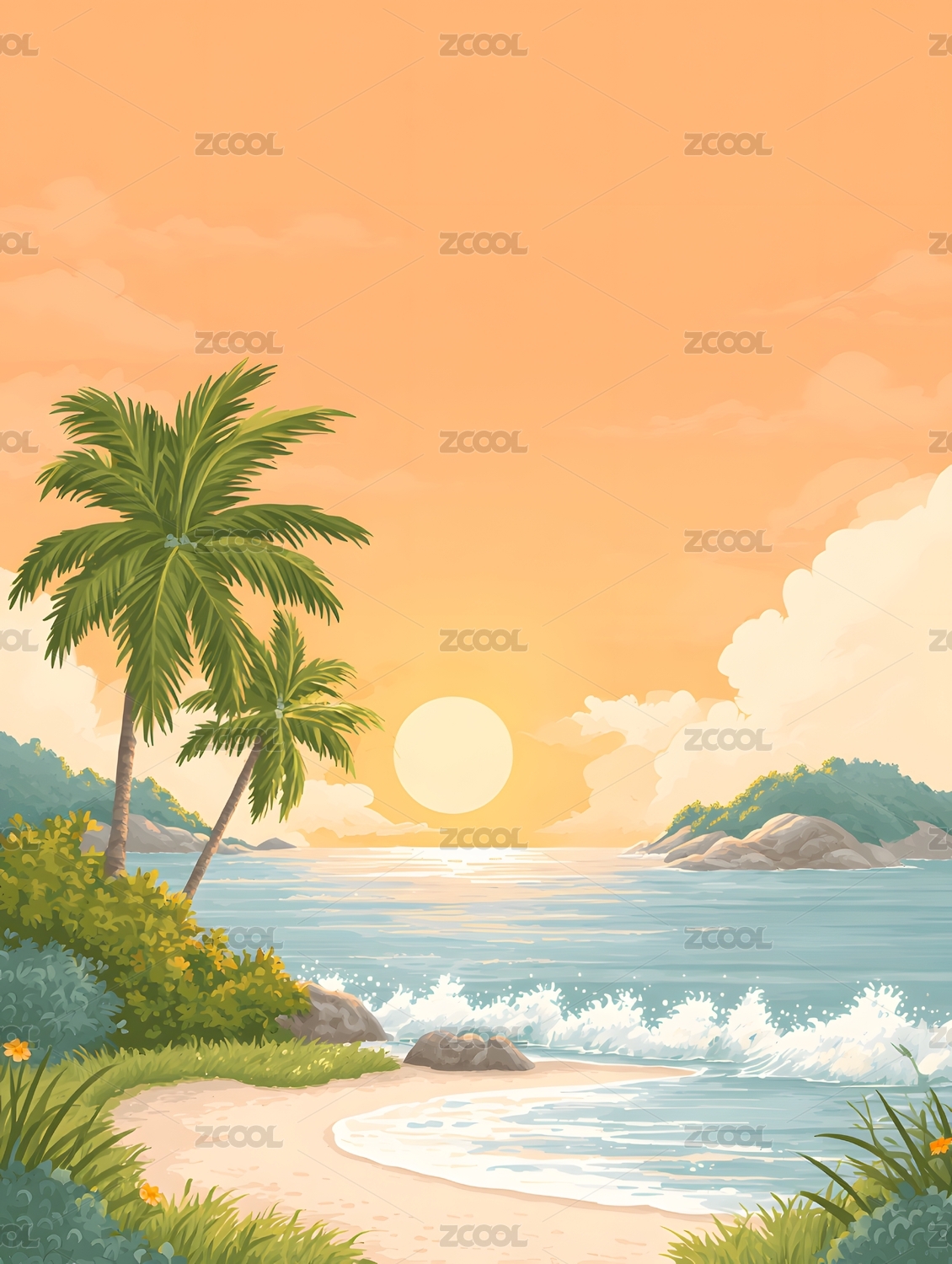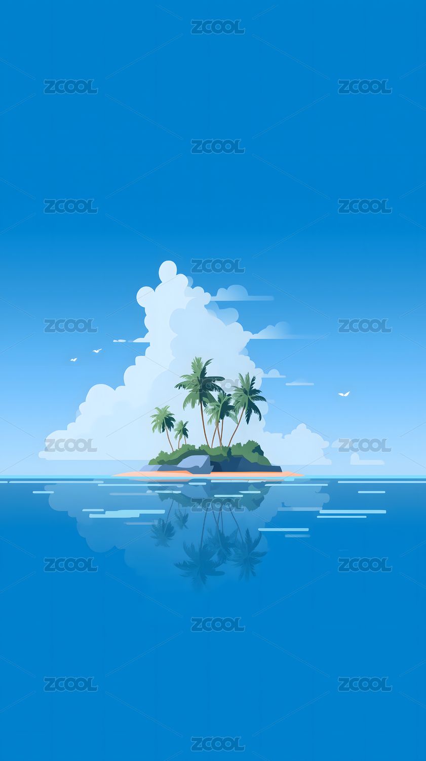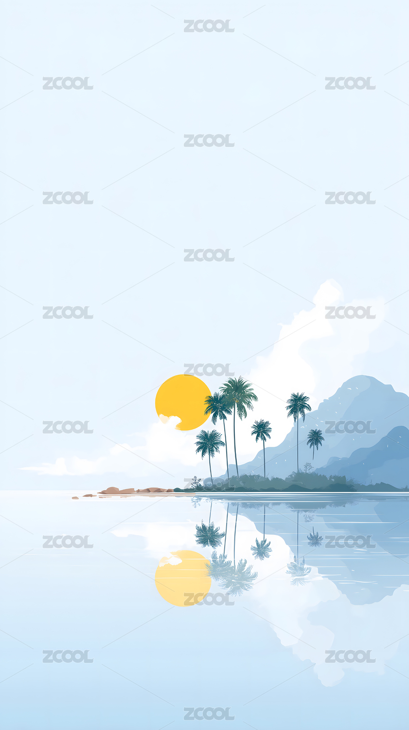 热带,小屋,椰子树,沙滩,倒影,山脉,蓝天,白云,宁静,自然