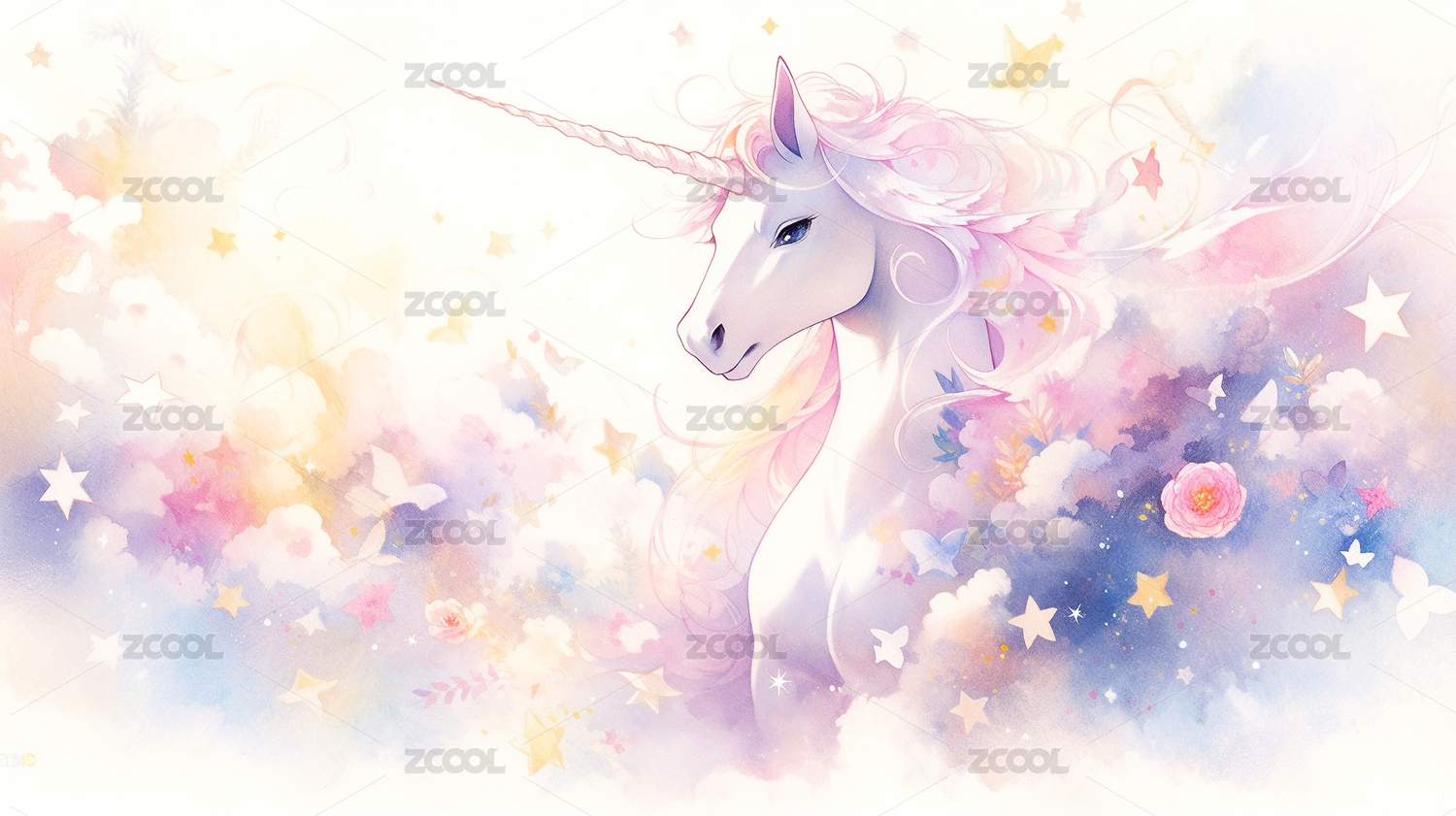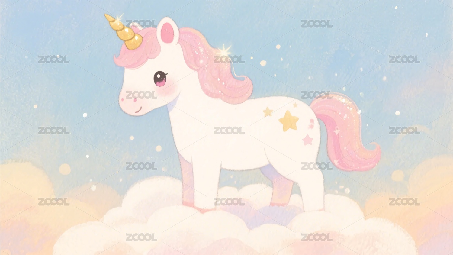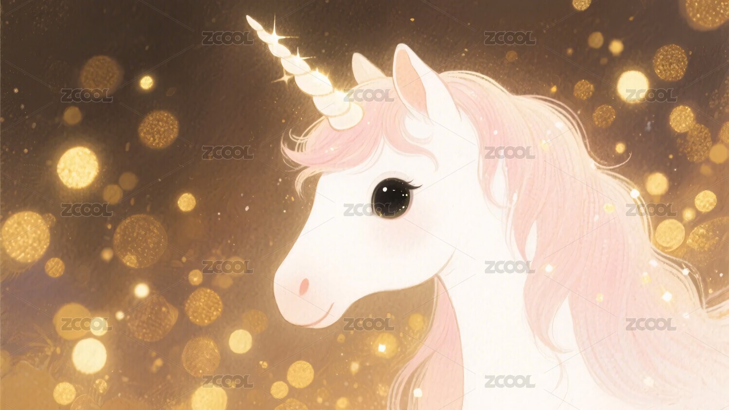 独角兽,粉色,插画,梦幻,画面元素,星星,光斑,童话,幻想,卡通