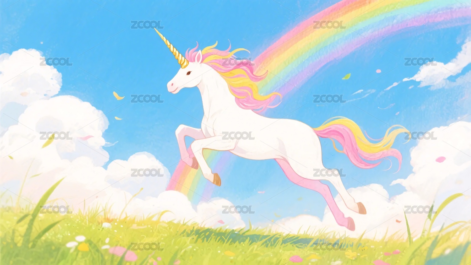 独角兽,云朵,天空,插画,梦幻,童话,奇幻,矢量,动物,元素