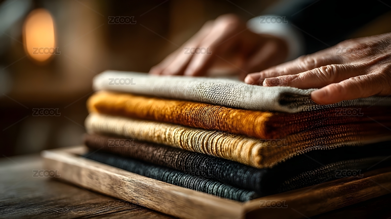 叠放的彩色丝巾 温暖烛光 柔和氛围