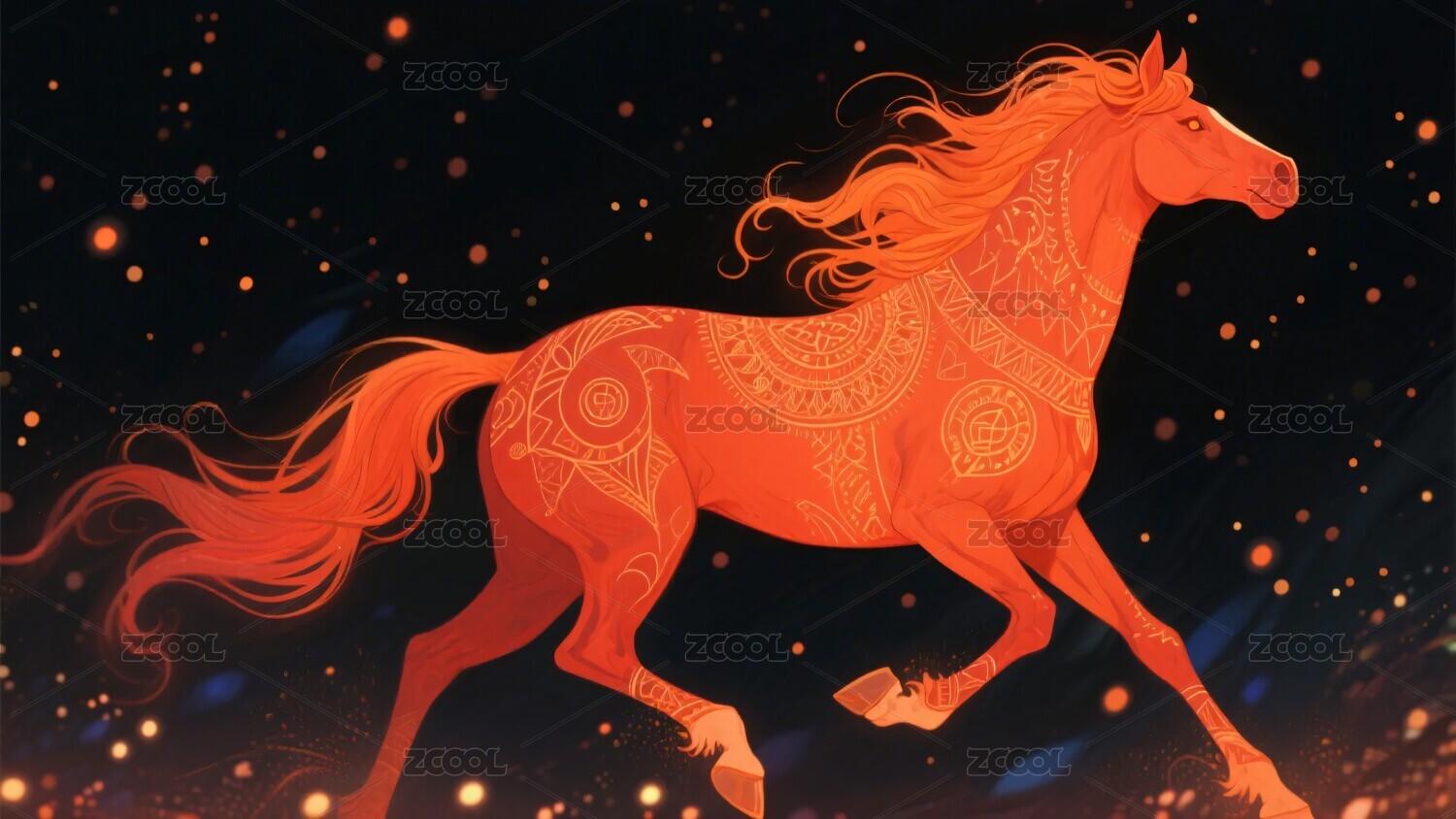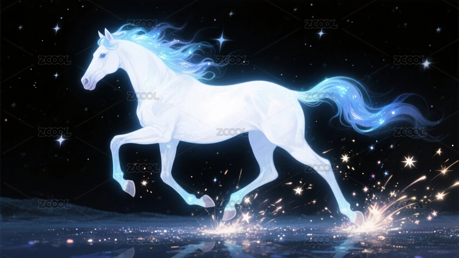 骏马,星空,插画,梦幻,奔跑,星星,元素,夜空,鬃毛,尾巴