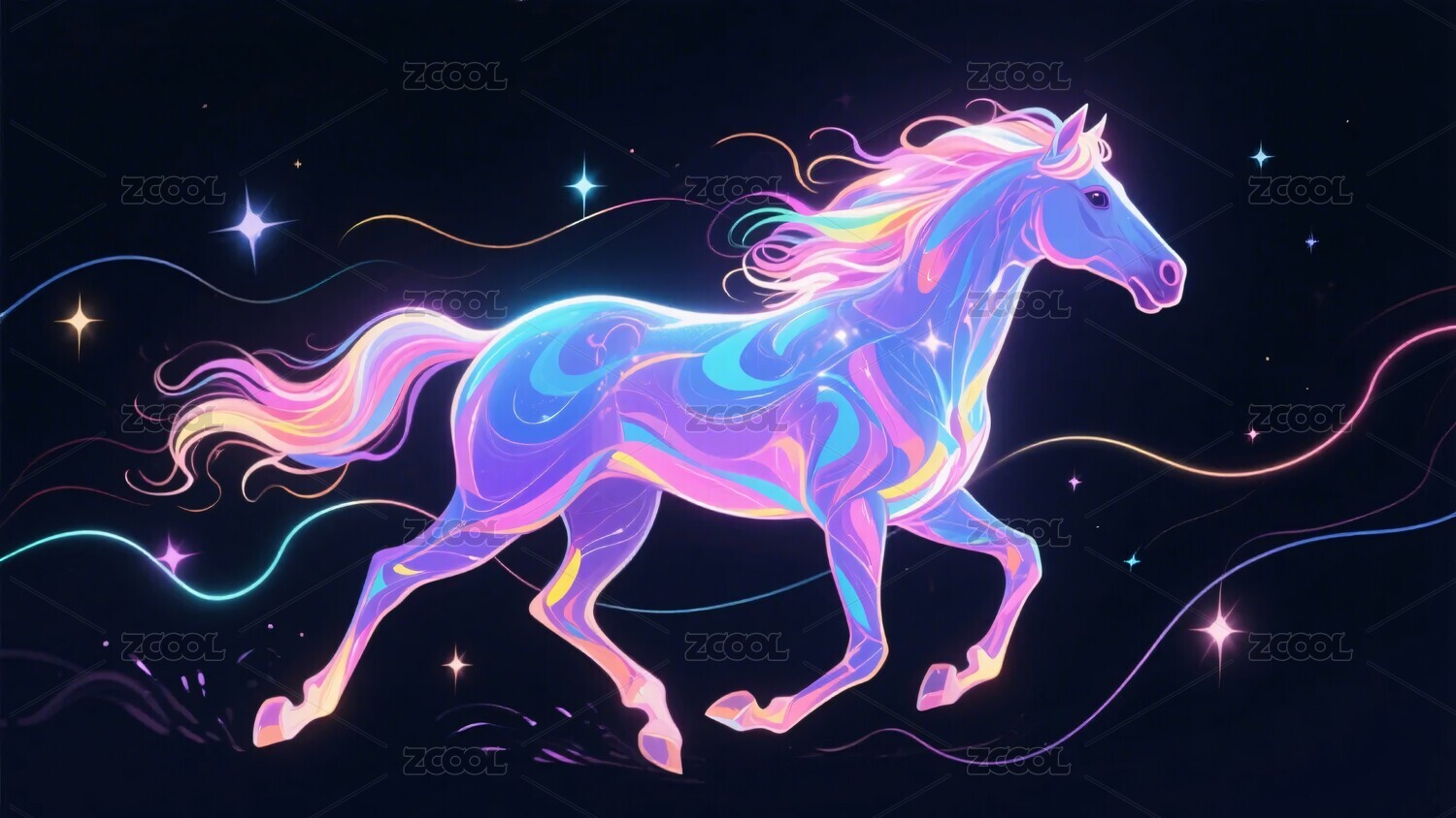 梦幻炫彩奔跑的发光马