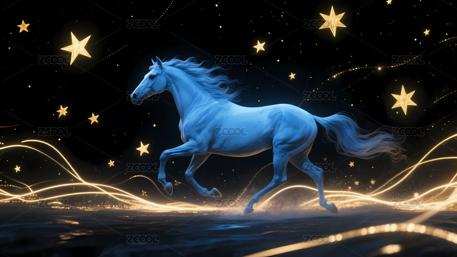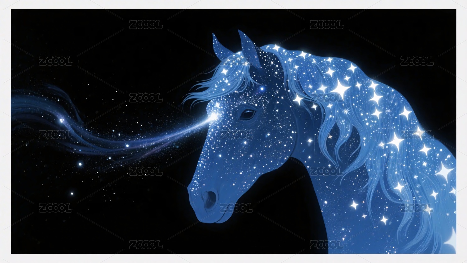蓝色飞奔马星空光带梦幻