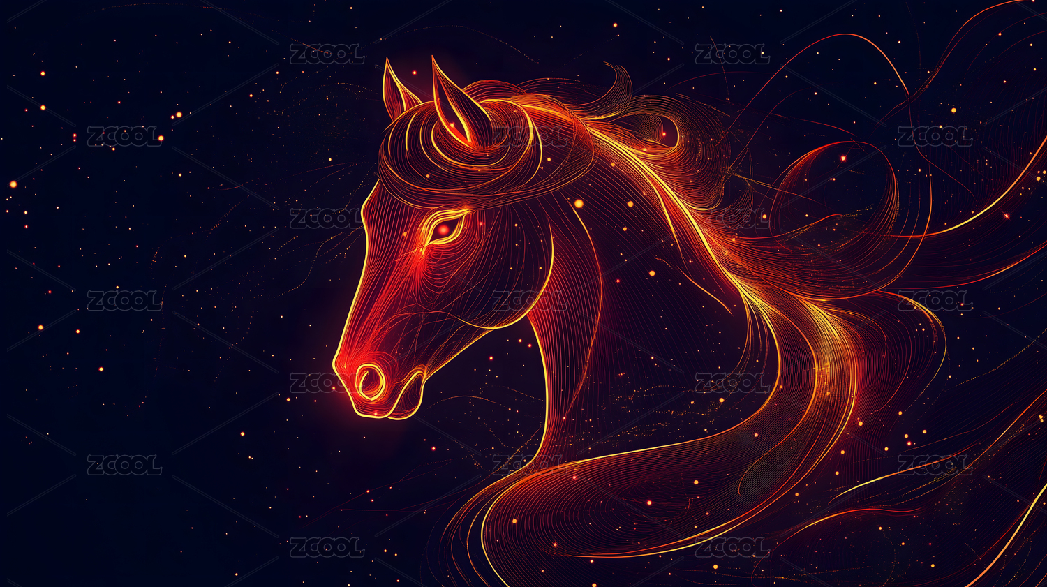 生肖马吉祥物点缀红金霓虹光效描边