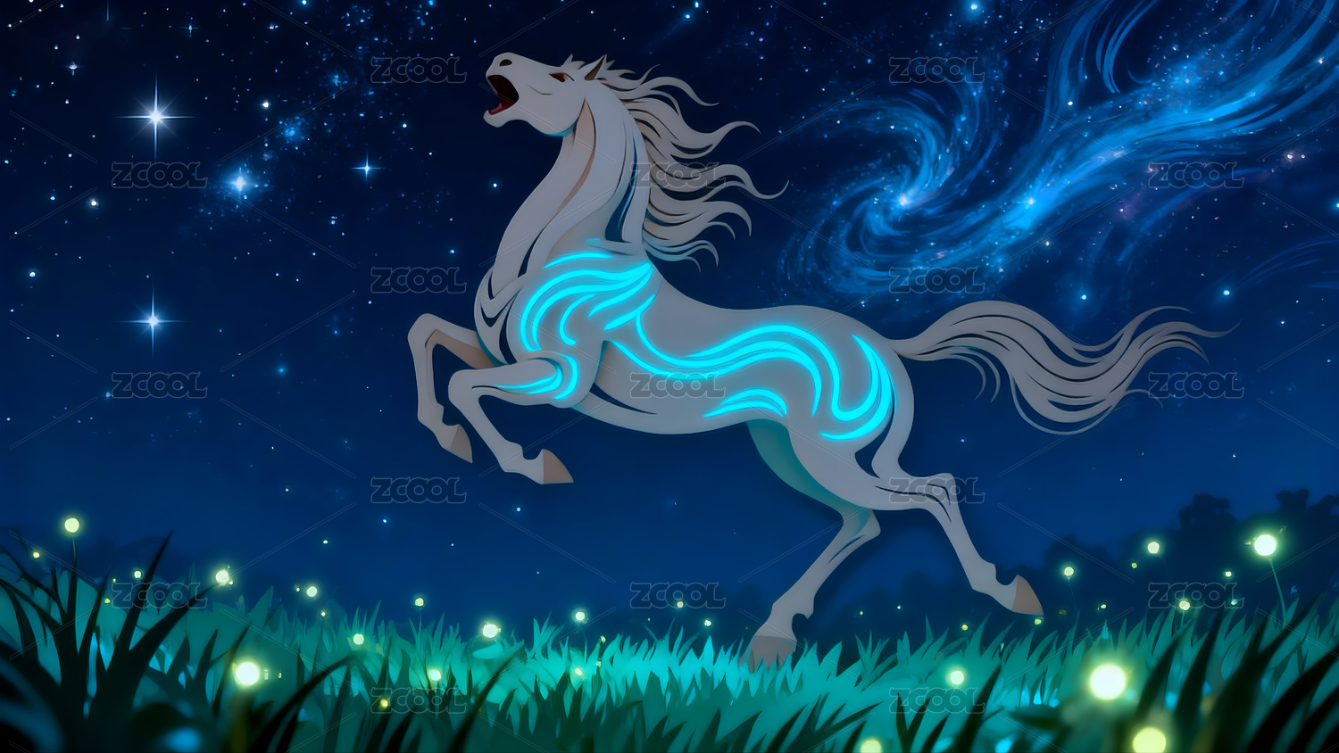 星空下奔跑的梦幻骏马