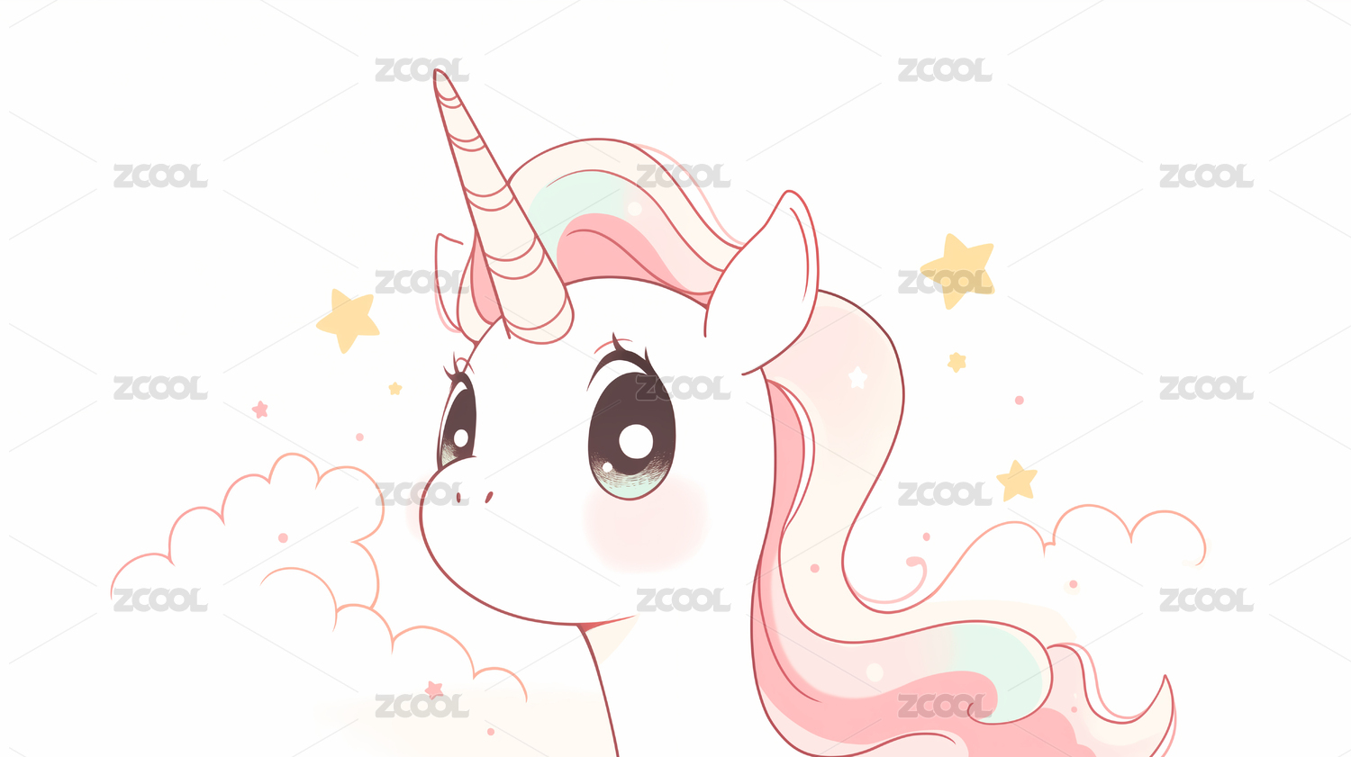 独角兽,粉色,星星,插画,卡通,梦幻,可爱,元素,背景,矢量