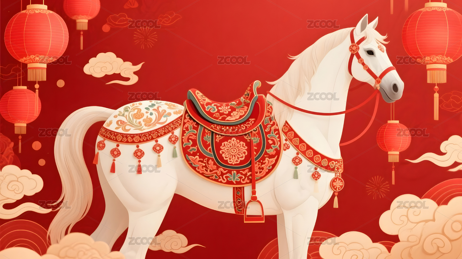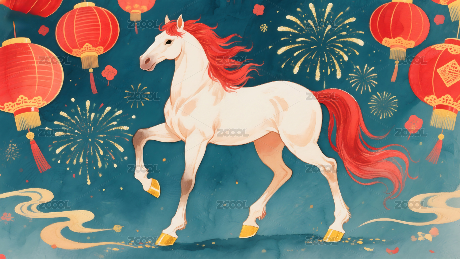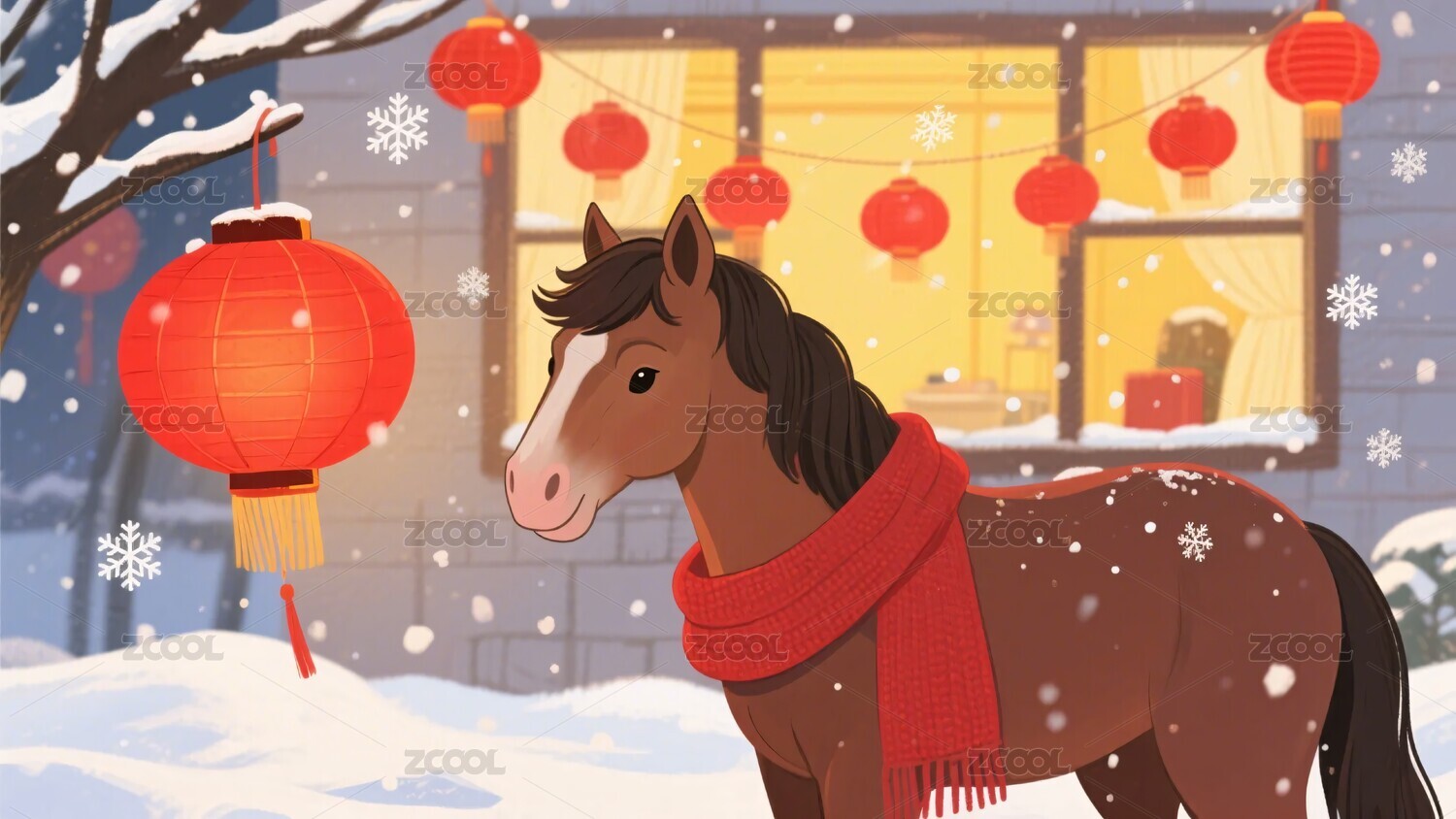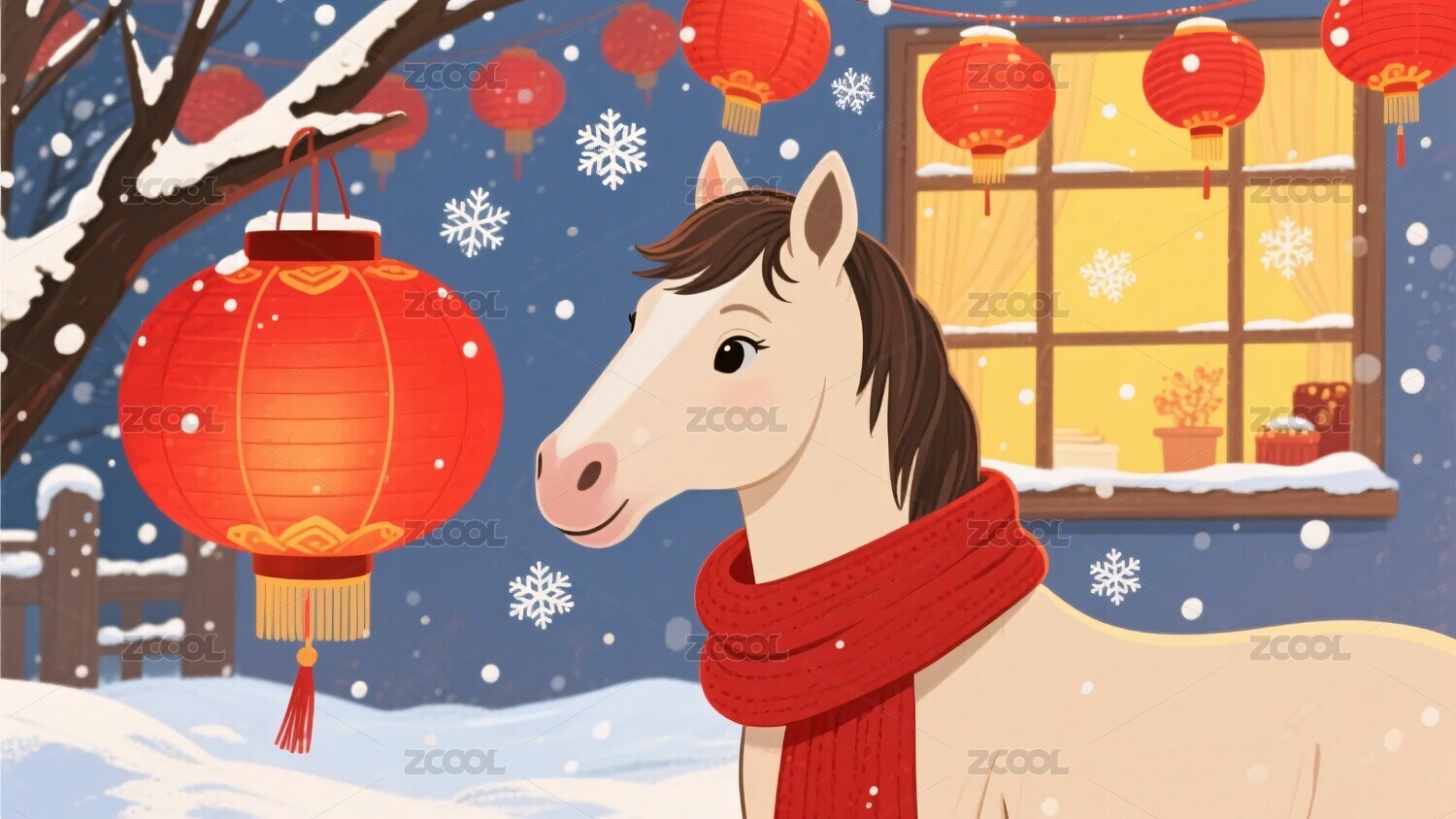 小马,圣诞,灯笼,雪花,插画,矢量,节日,喜庆,动物,装饰