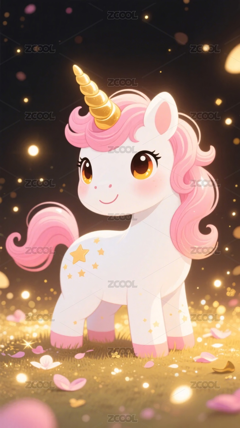 独角兽,梦幻,插画,云朵,星空,可爱,卡通,粉色,蓝色,金色
