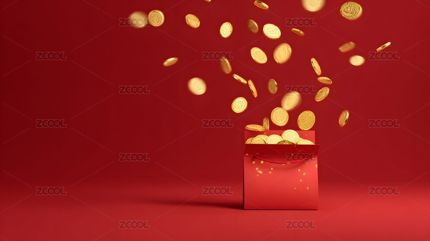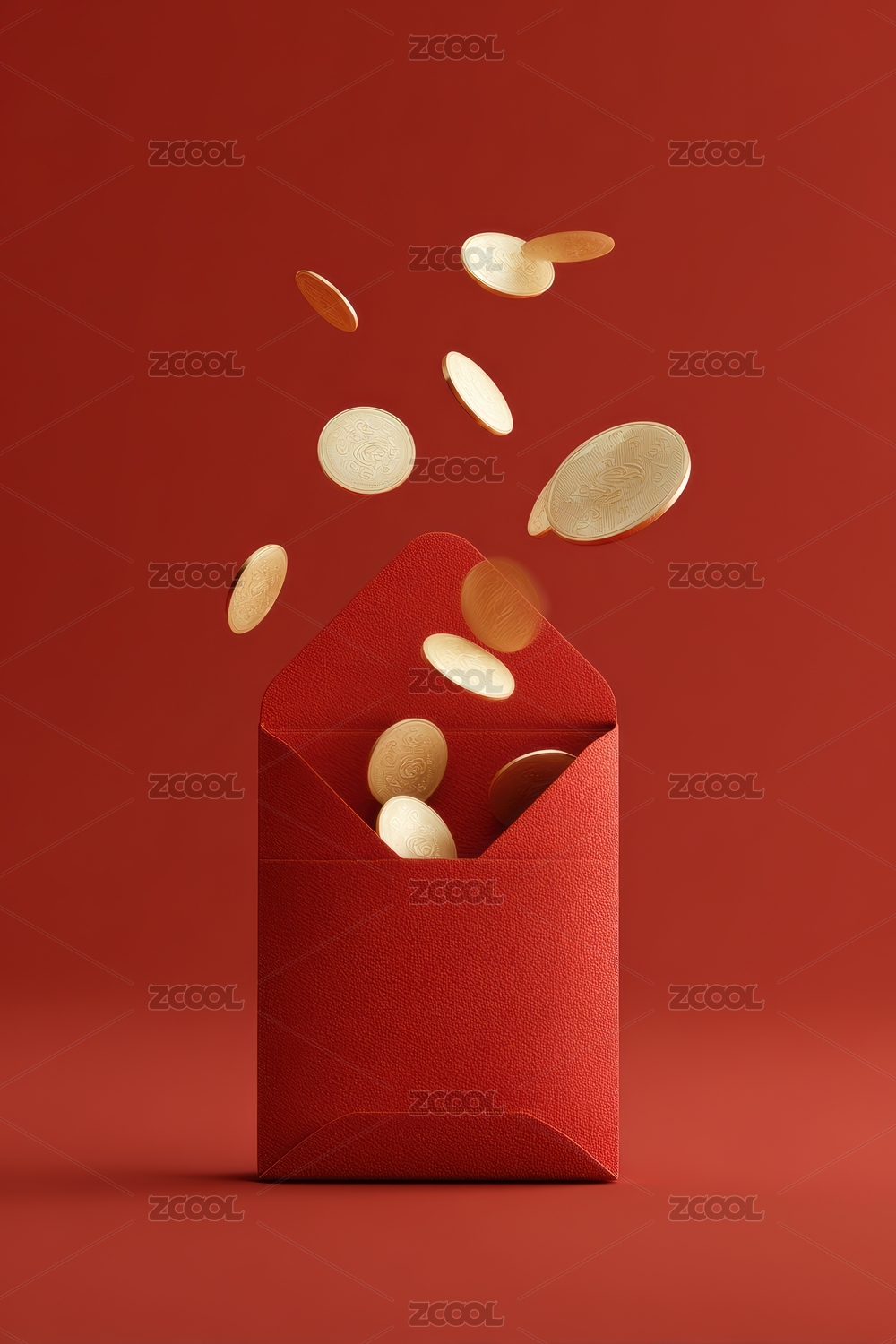设计,红色,3D渲染,节日,喜庆,红包,金币,财富,福利,新年