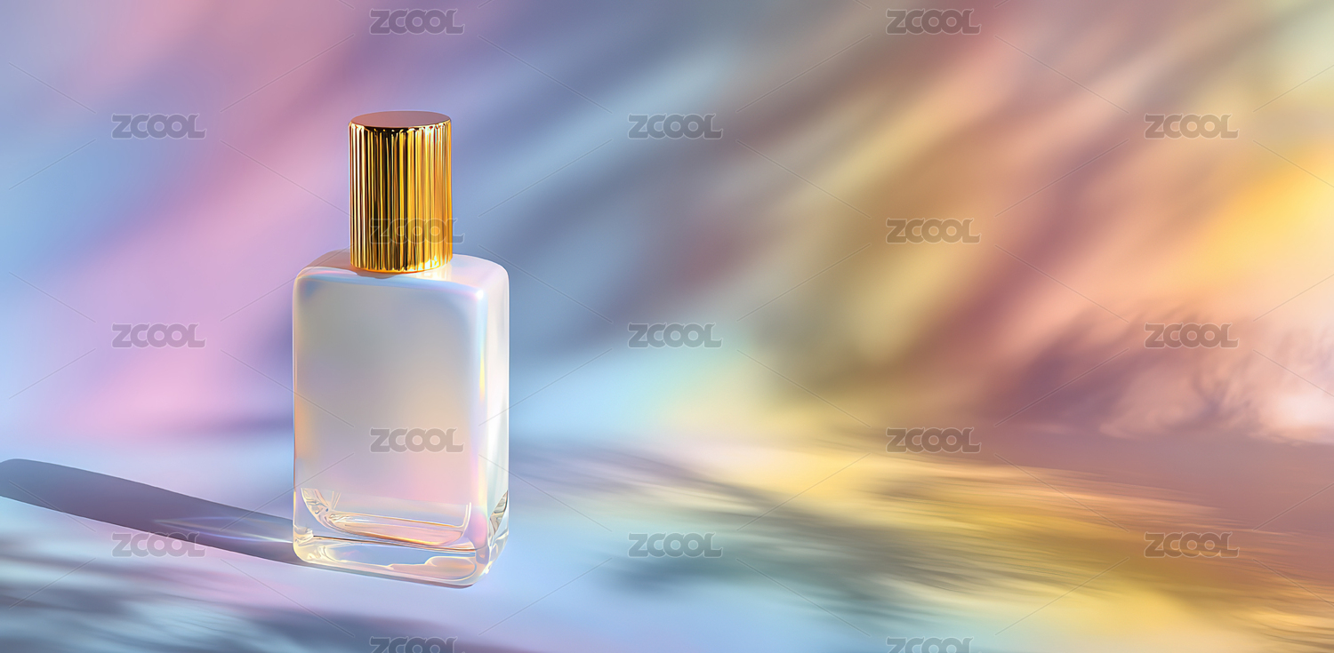 彩虹指甲油瓶在粉色背景上反射梦幻光泽