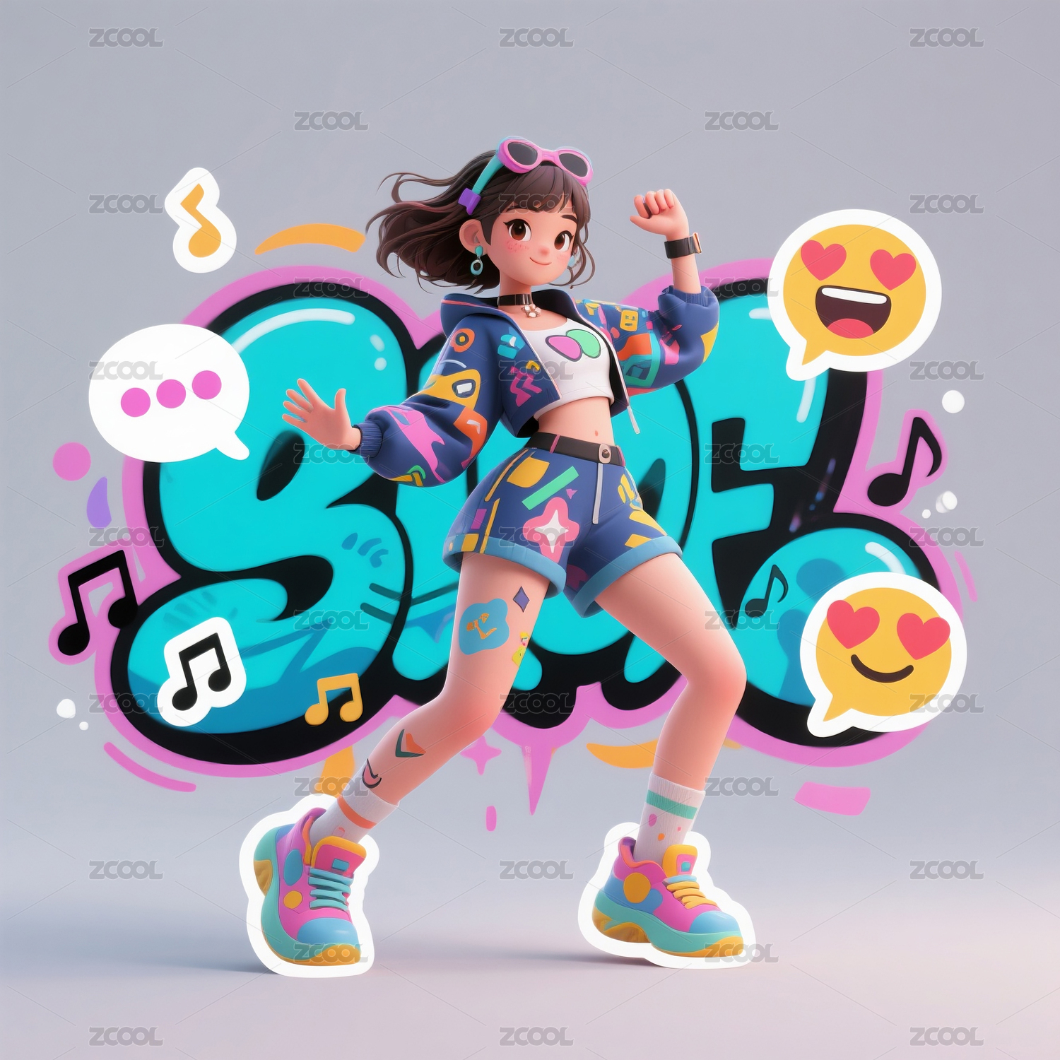 涂鸦,潮酷,花哨,少年,贴纸,前卫,美少女,女青年,女孩子,大长腿