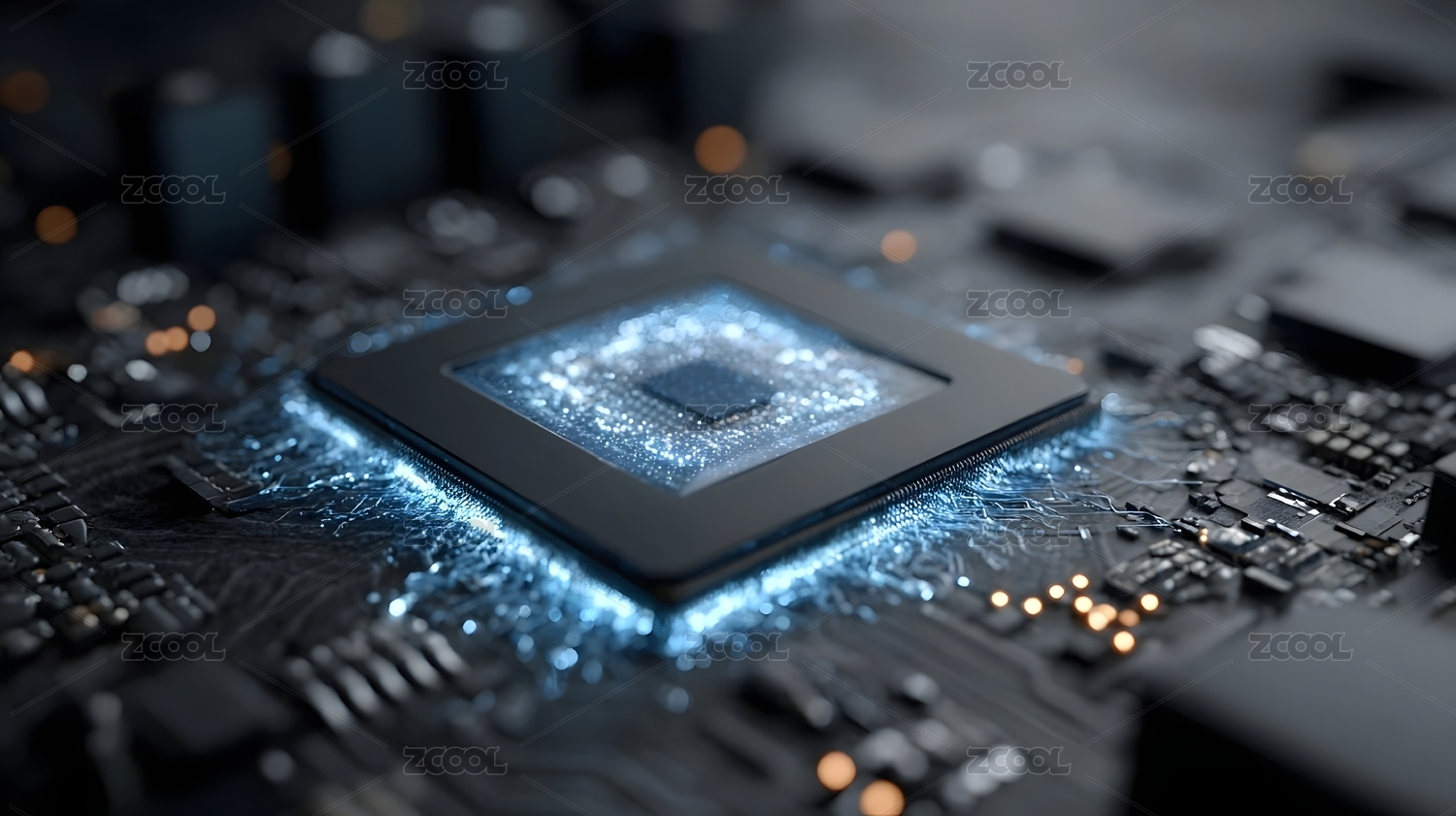 芯片电路板科技感十足蓝色光效