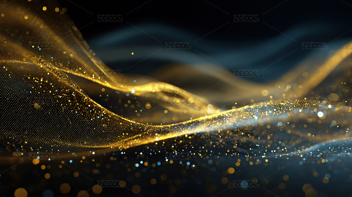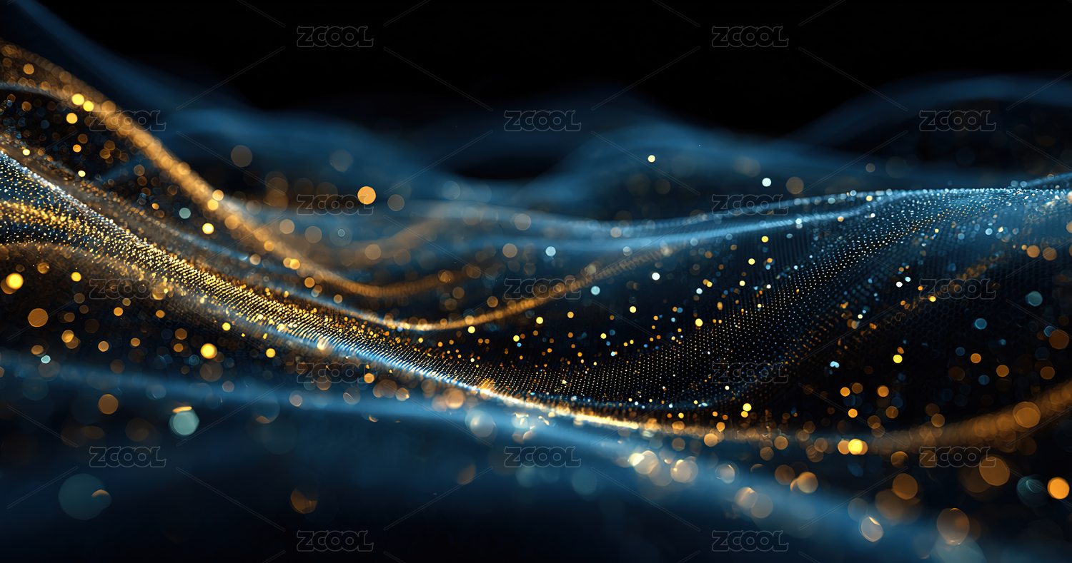 金蓝波浪粒子抽象图