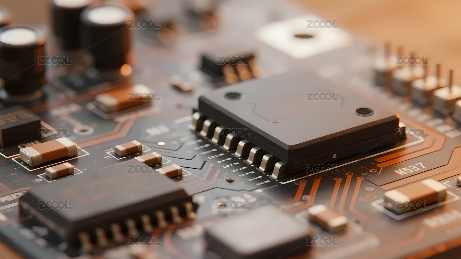 橙色电路板黑棕电子元件