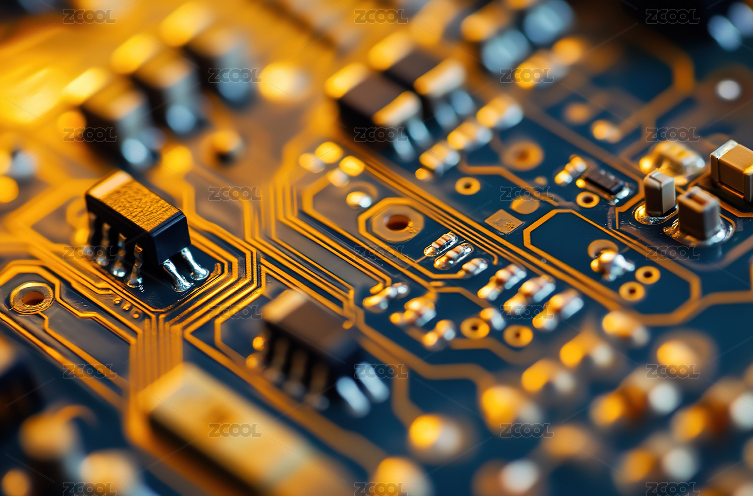 电路板上的电子元件特写