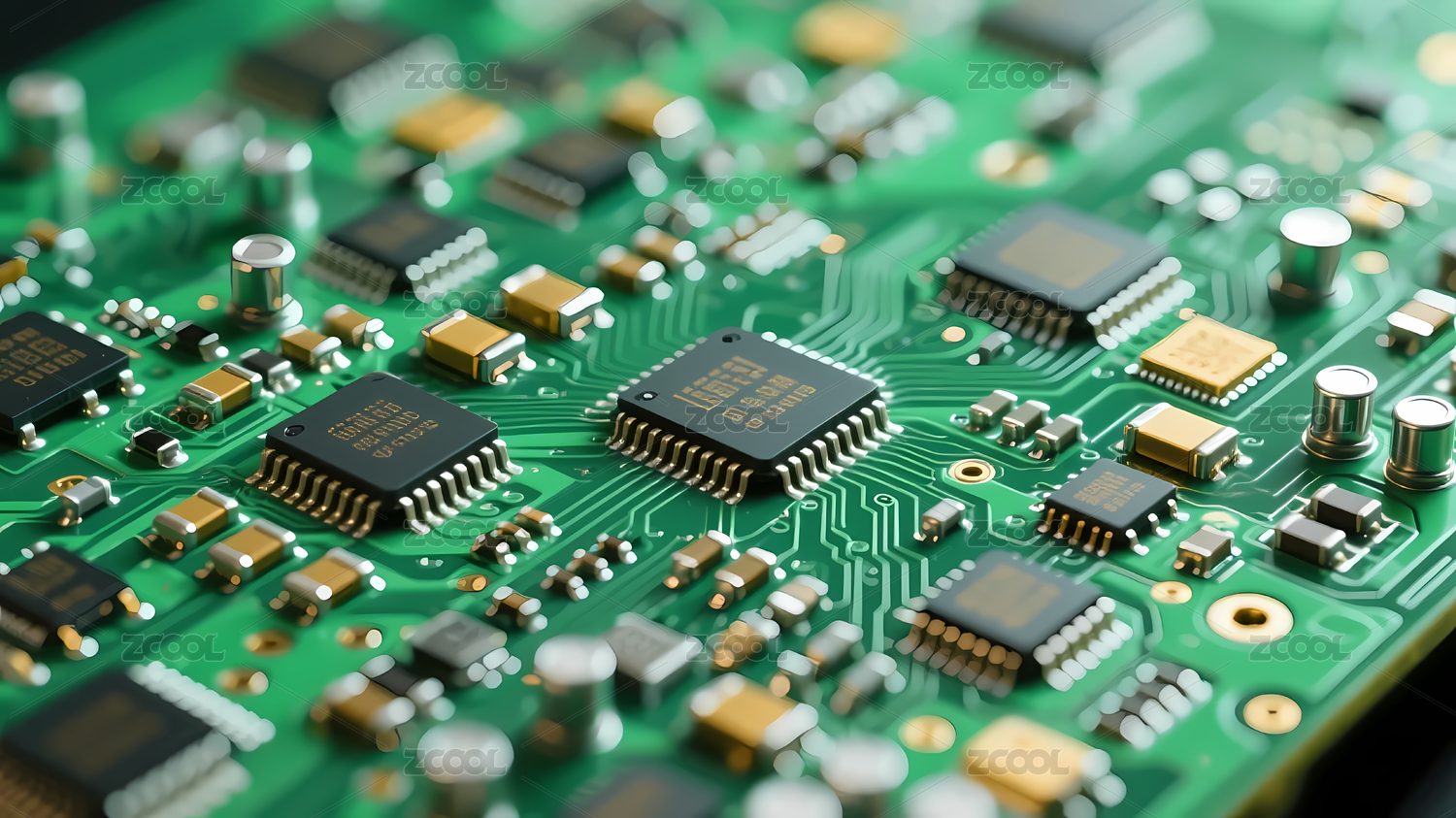 绿色电路板精密元件特写