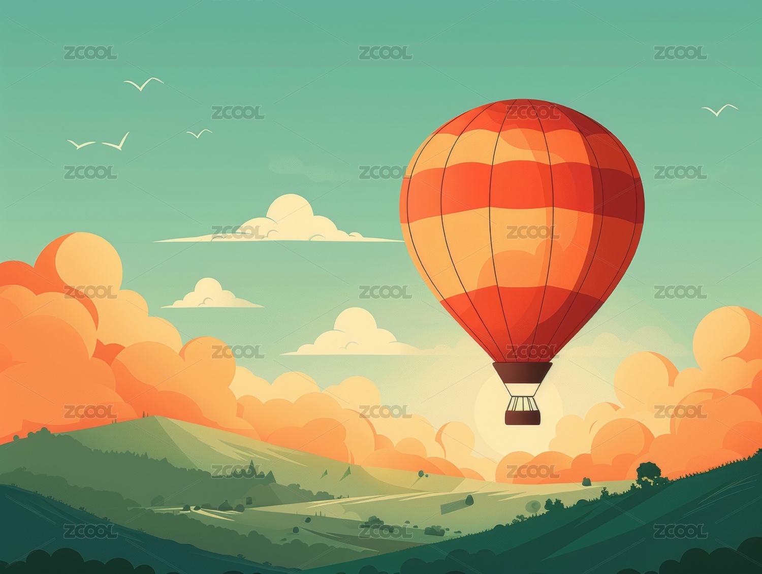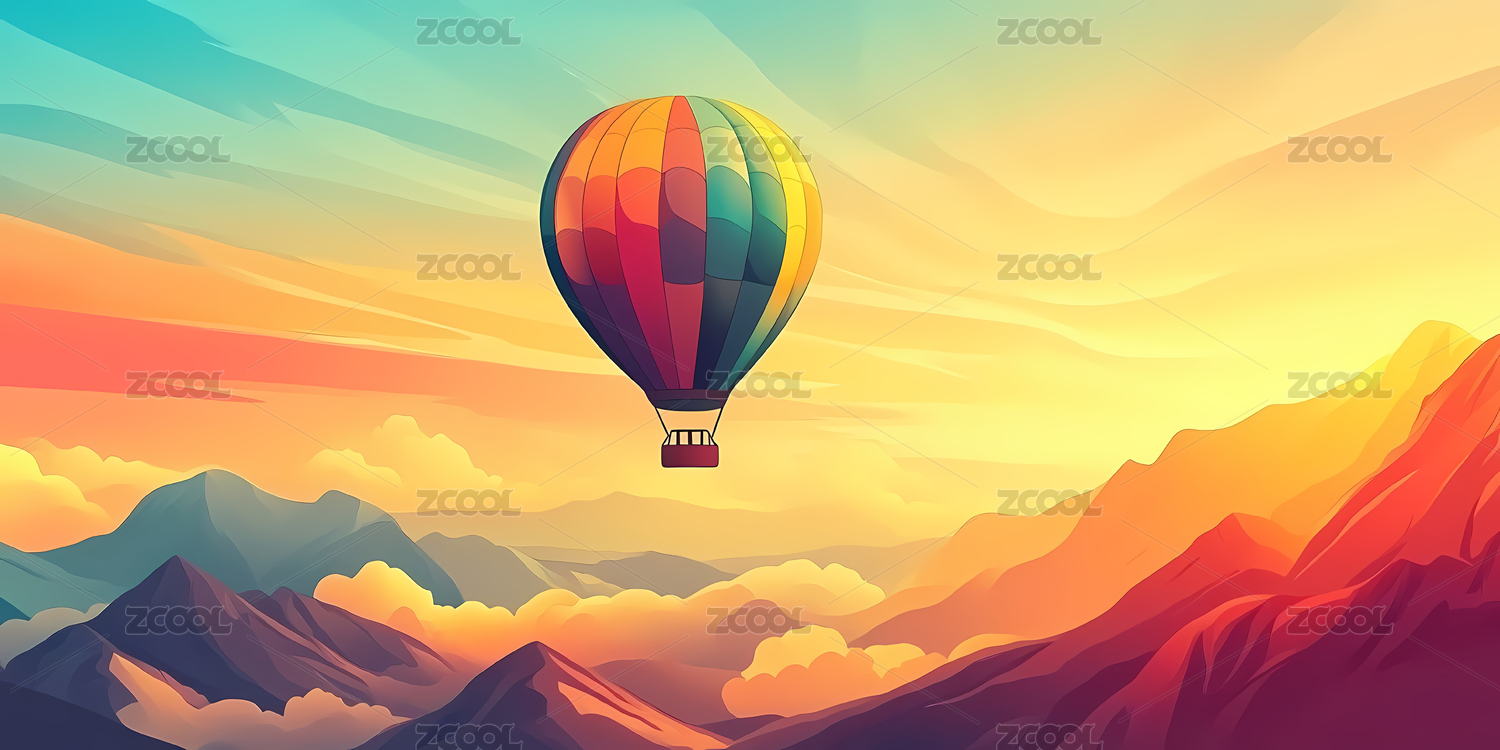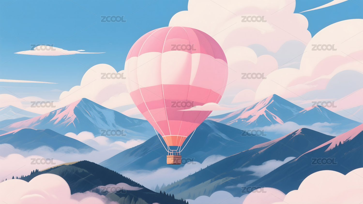 热气球,山峰,云海,天空,旅行,探险,童话,卡通,飞翔,自由