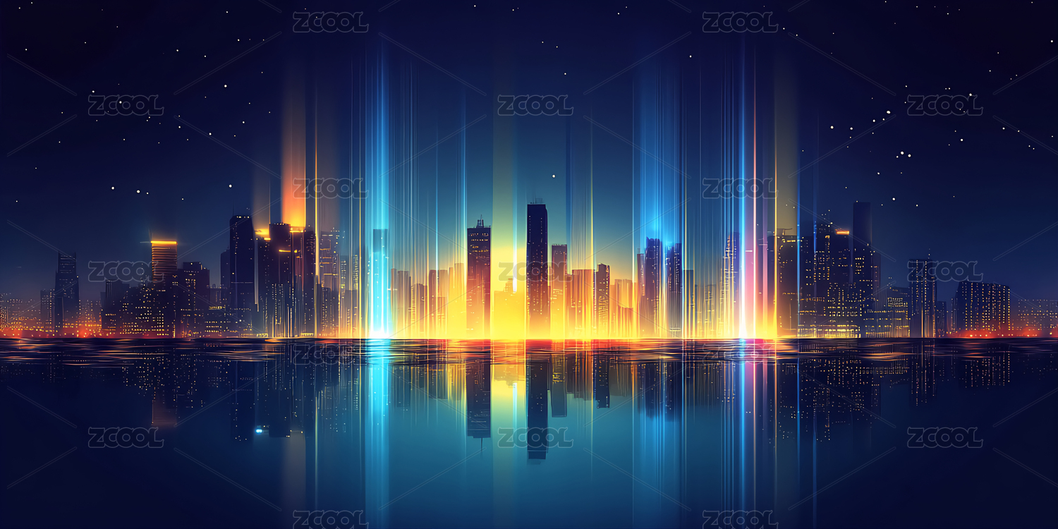 建筑,光点,现代,水面,灯光,夜晚,光线,反射,光束,高楼