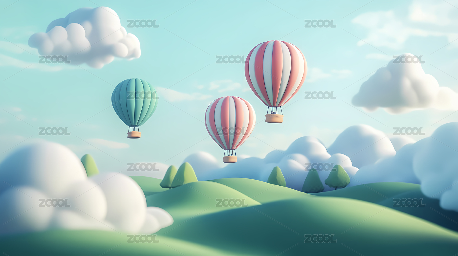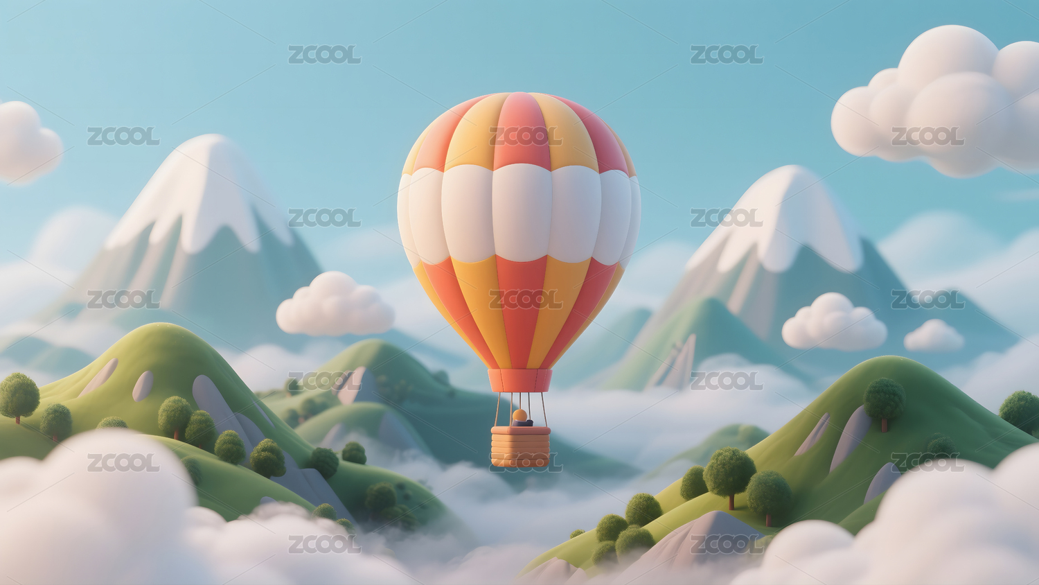 热气球,山峰,云海,天空,旅行,探险,童话,卡通,飞翔,自由