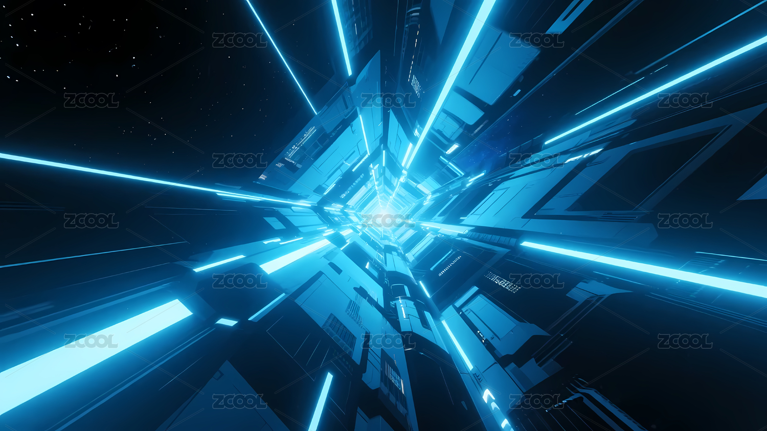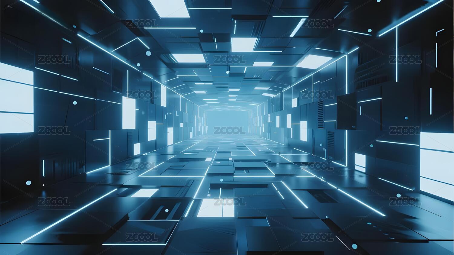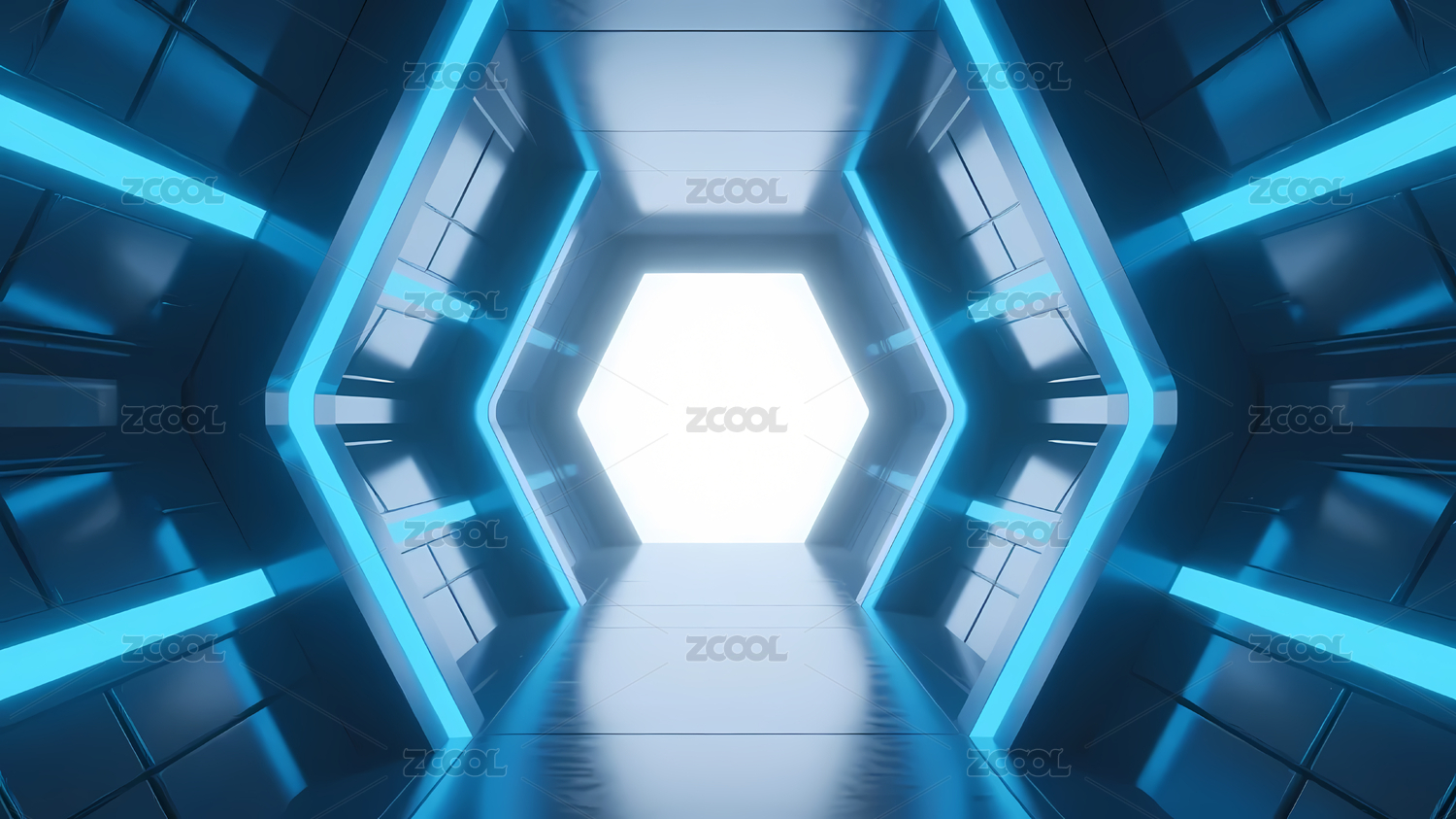 3D渲染的科幻延伸背景,蓝色未来科技感空