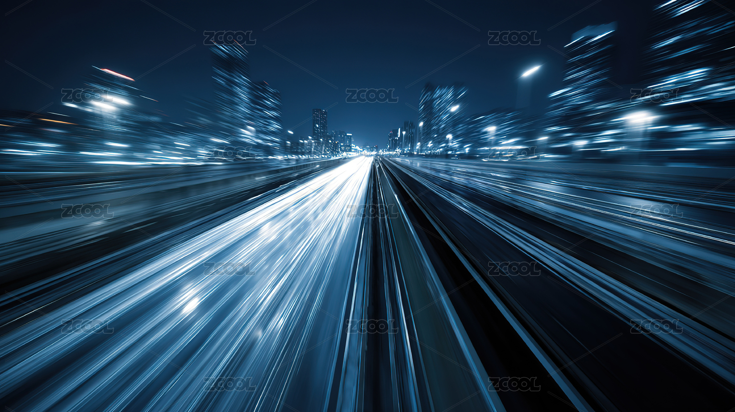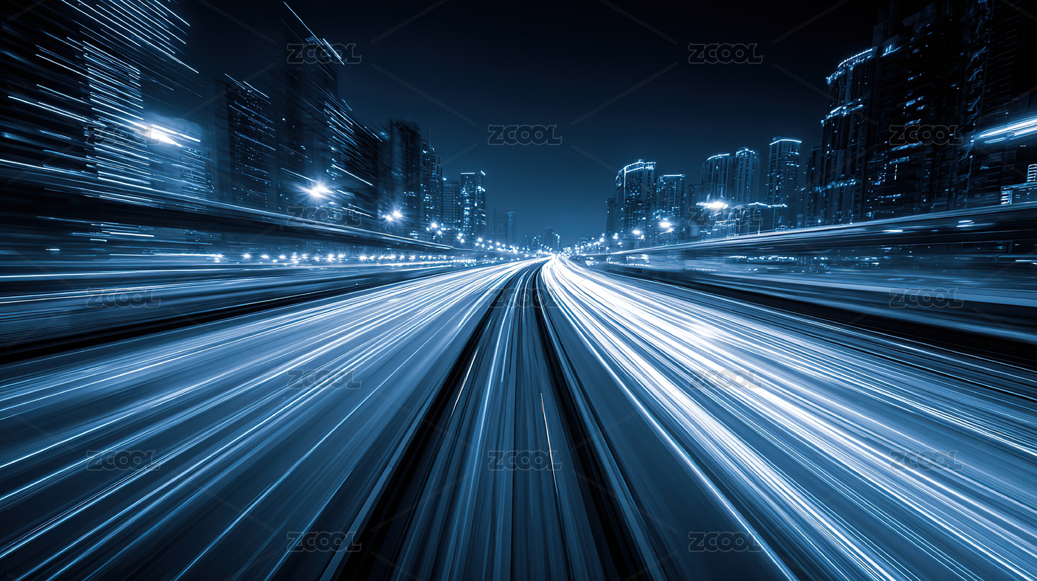 城市夜景光轨疾驰 速度与激情 科幻未来
