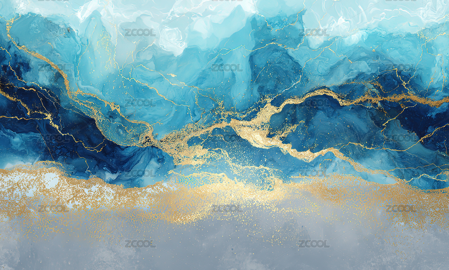 蓝色水墨渐变金色边缘抽象艺术背景图