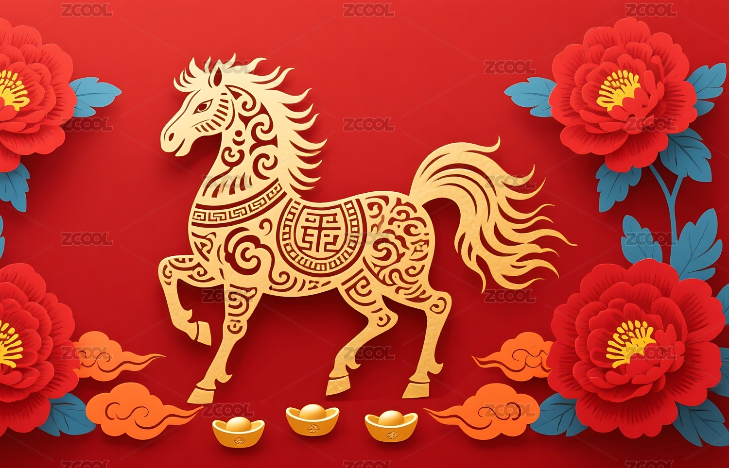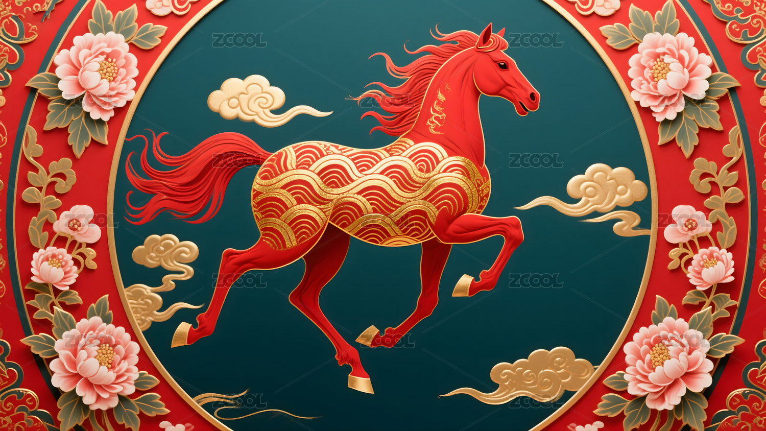 骏马,吉祥,祥云,中国风,喜庆,奔腾,活力,红色,马