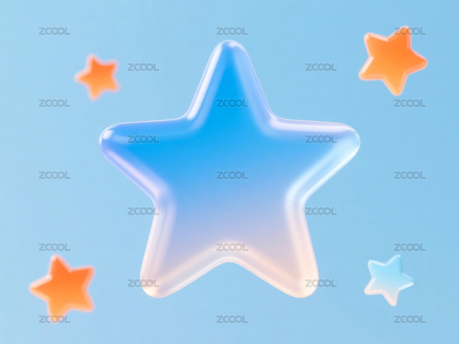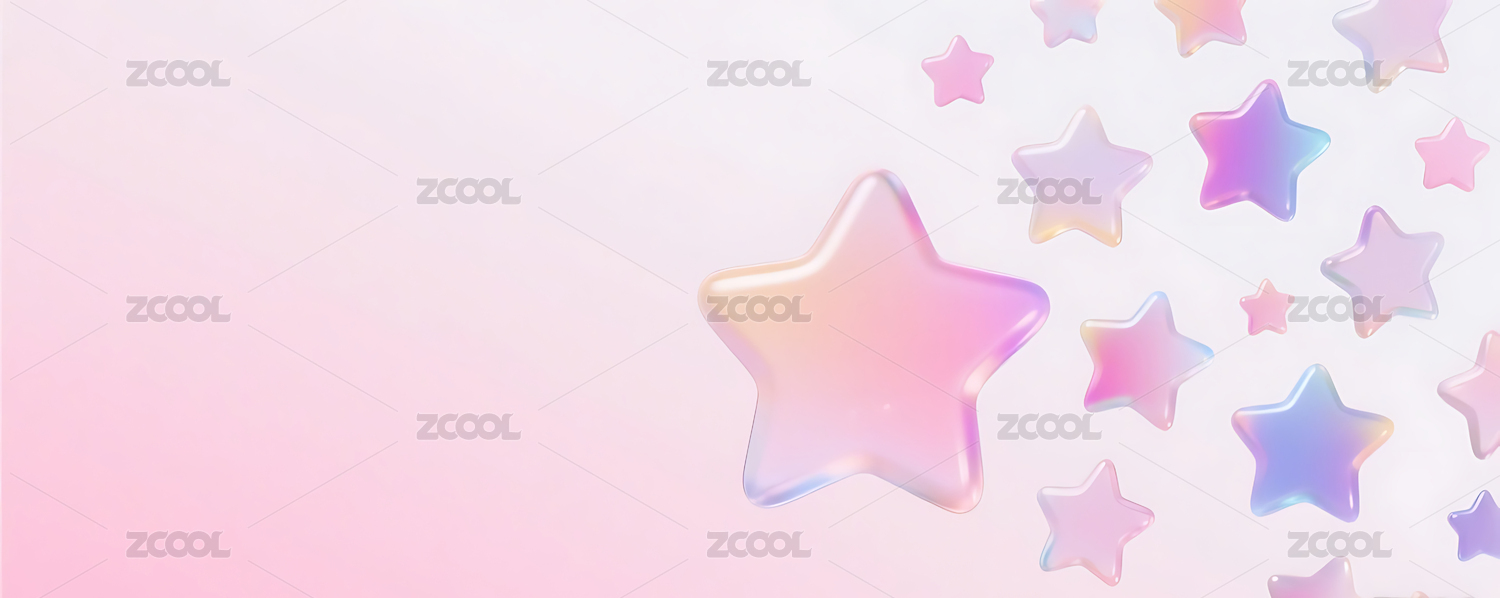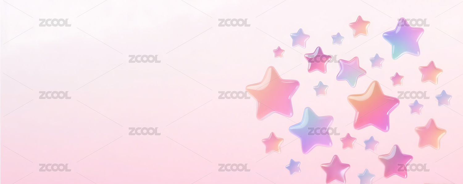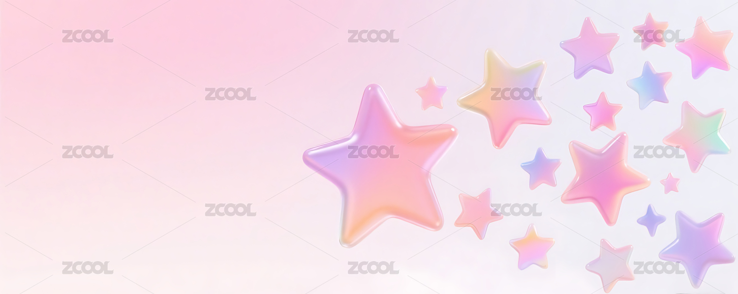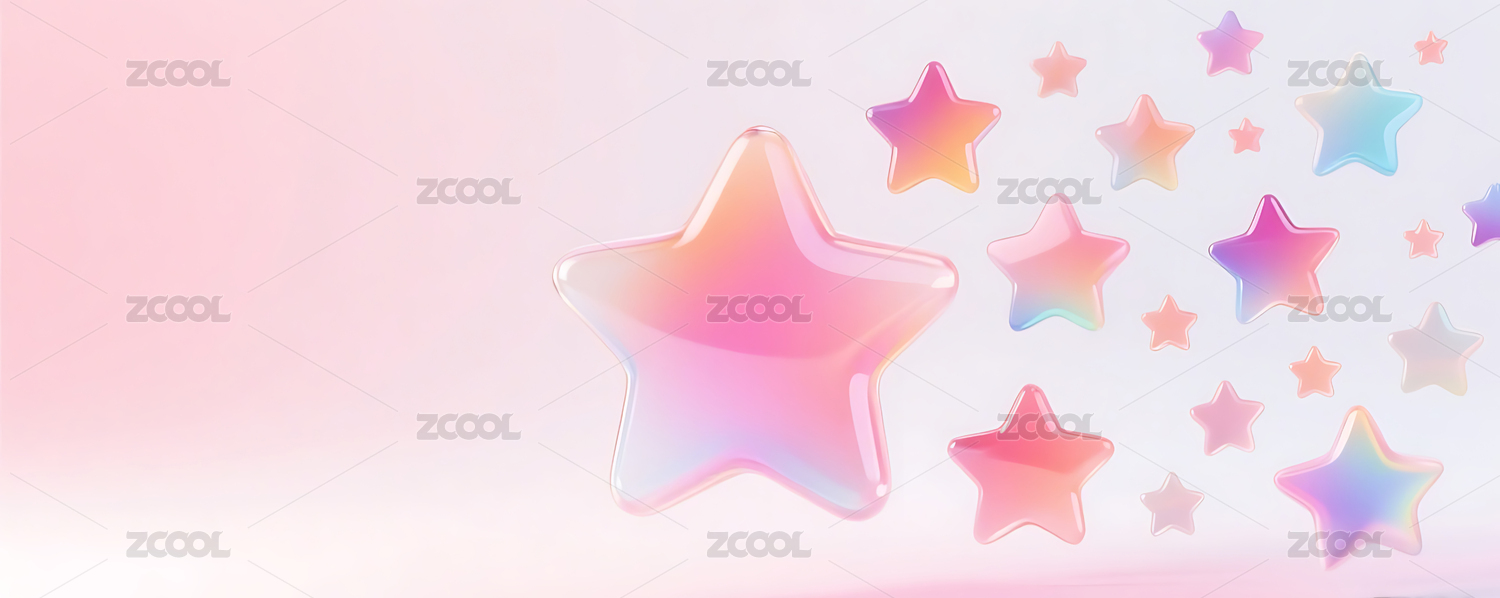 3D彩色玻璃质感渐变星星群粉色背景
