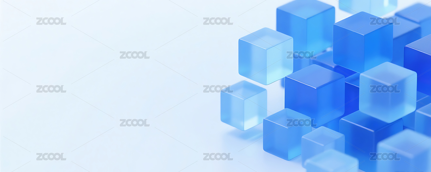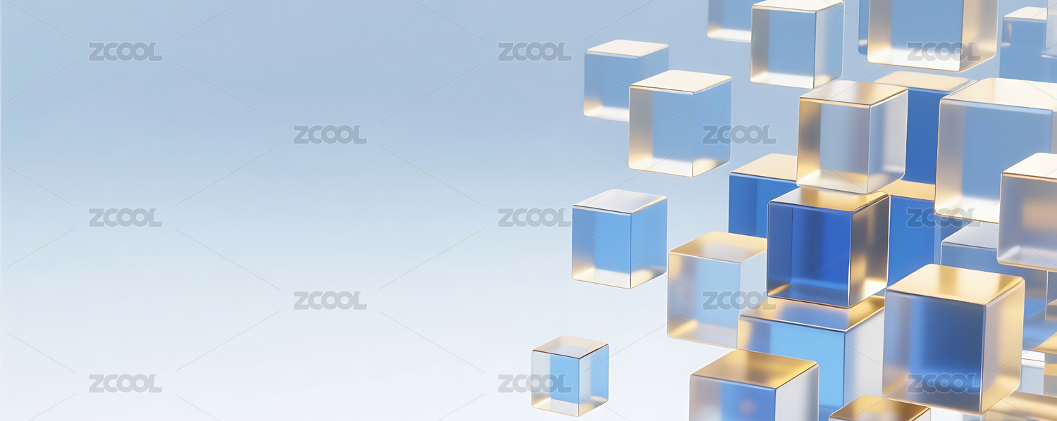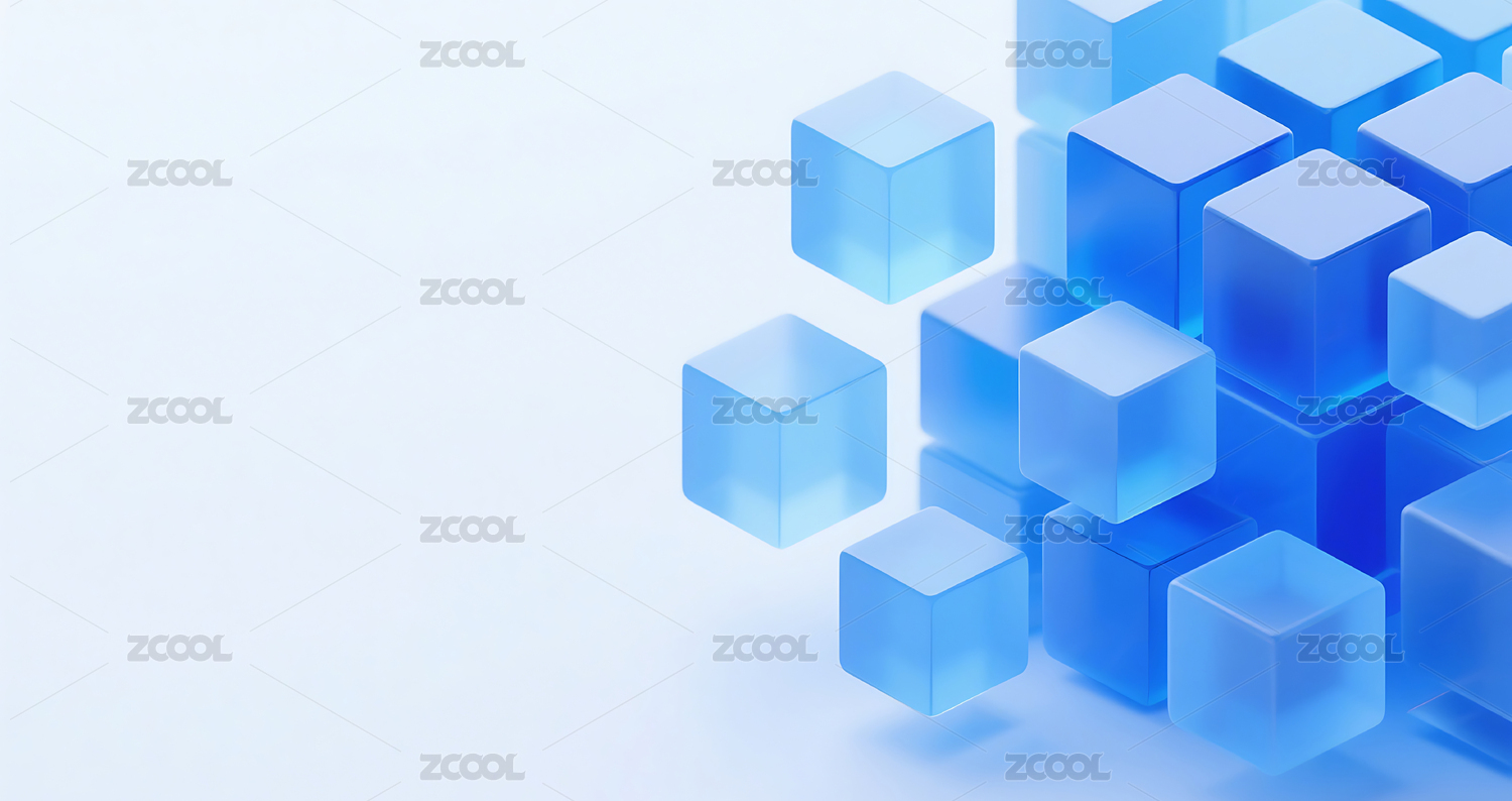 蓝色商务科技3D玻璃几何方块群背景