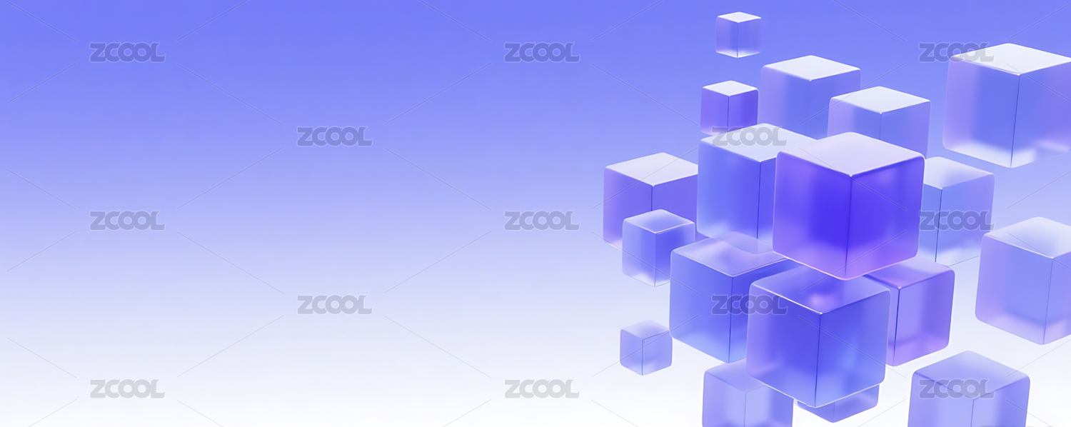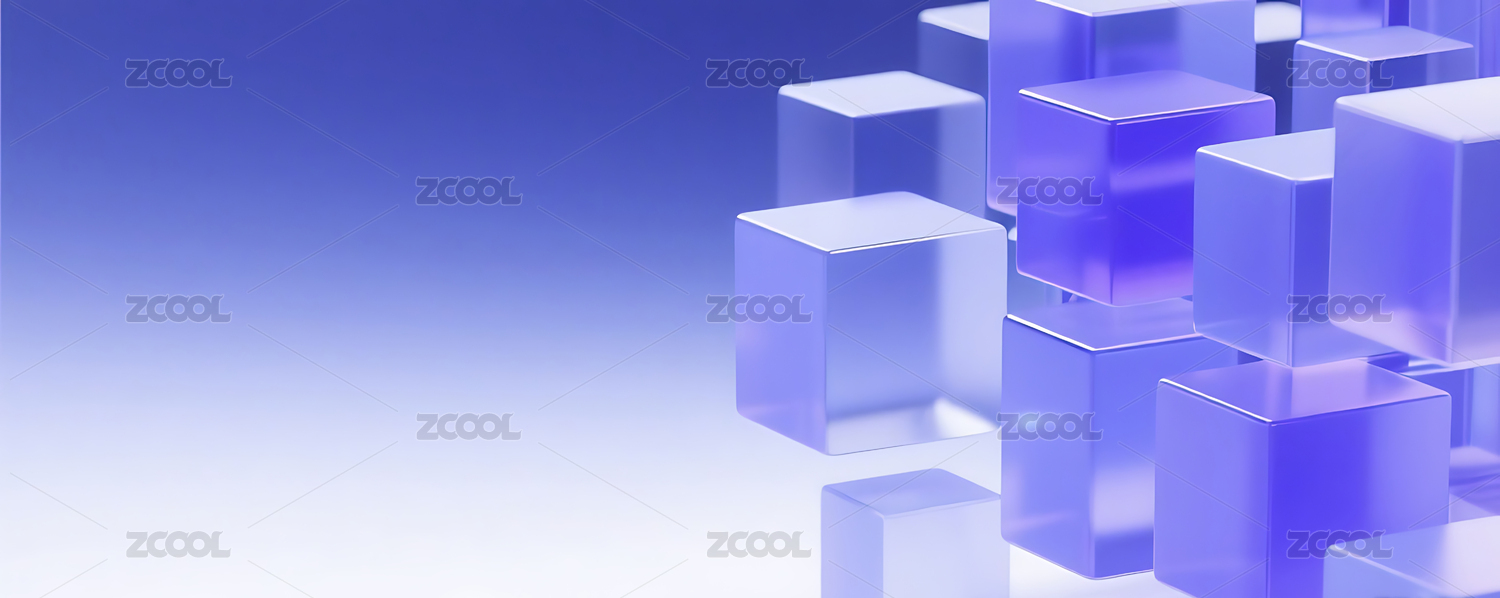 紫色商务科技3D玻璃几何方块群背景