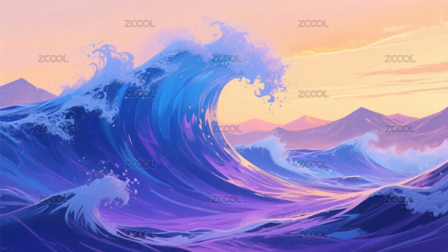 海浪,远山,天空,风景,插画,矢量,海洋,自然,景观,梦幻