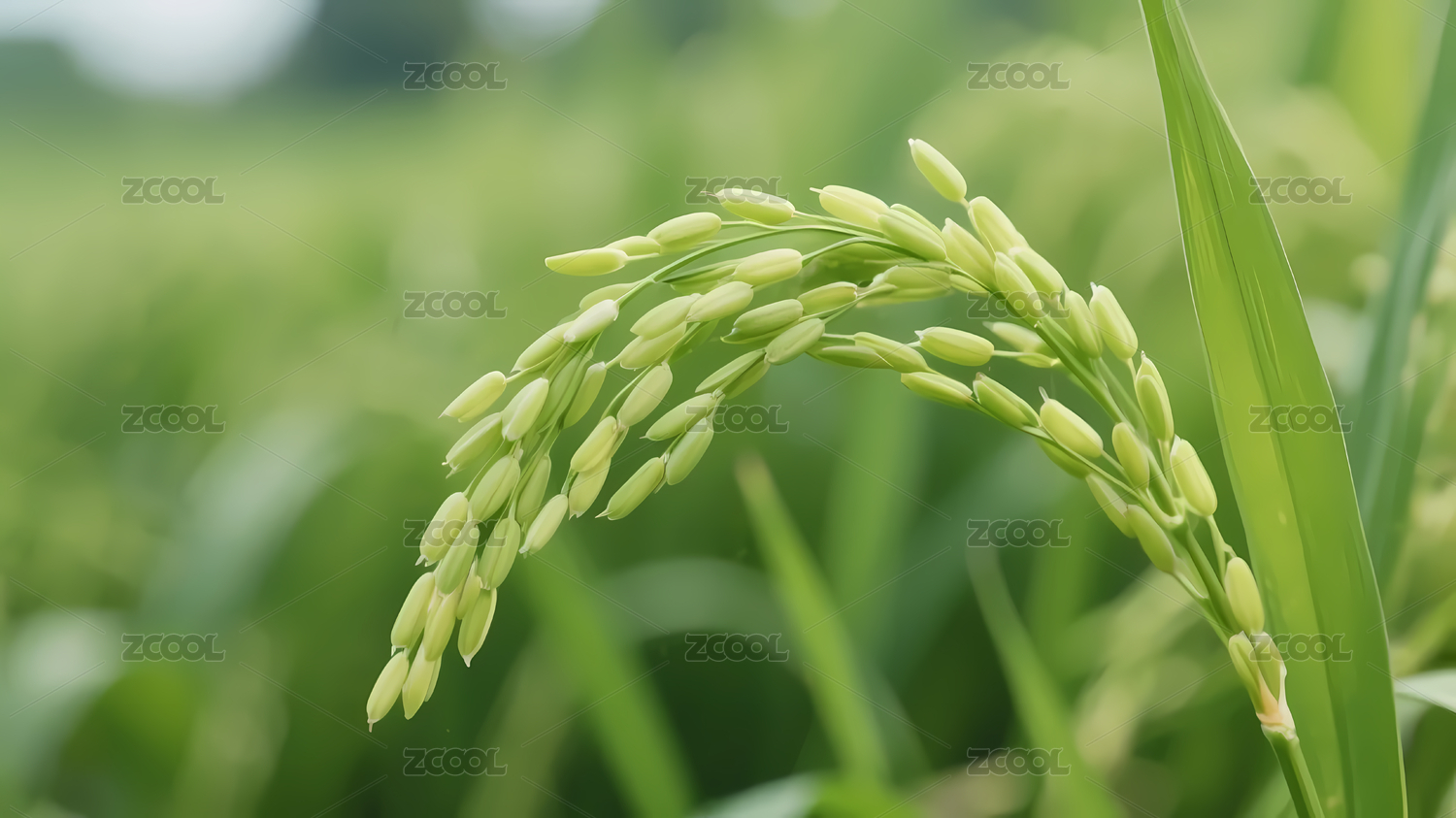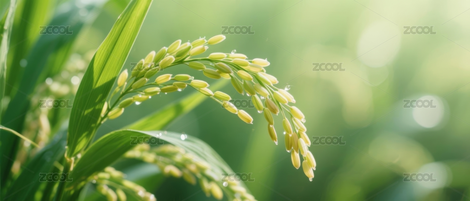 浅绿色稻穗田野自然风光