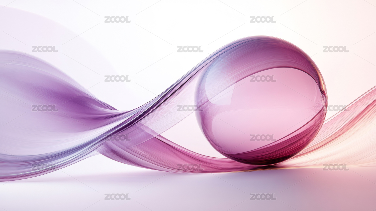 紫色和粉色的流动丝绸与球体