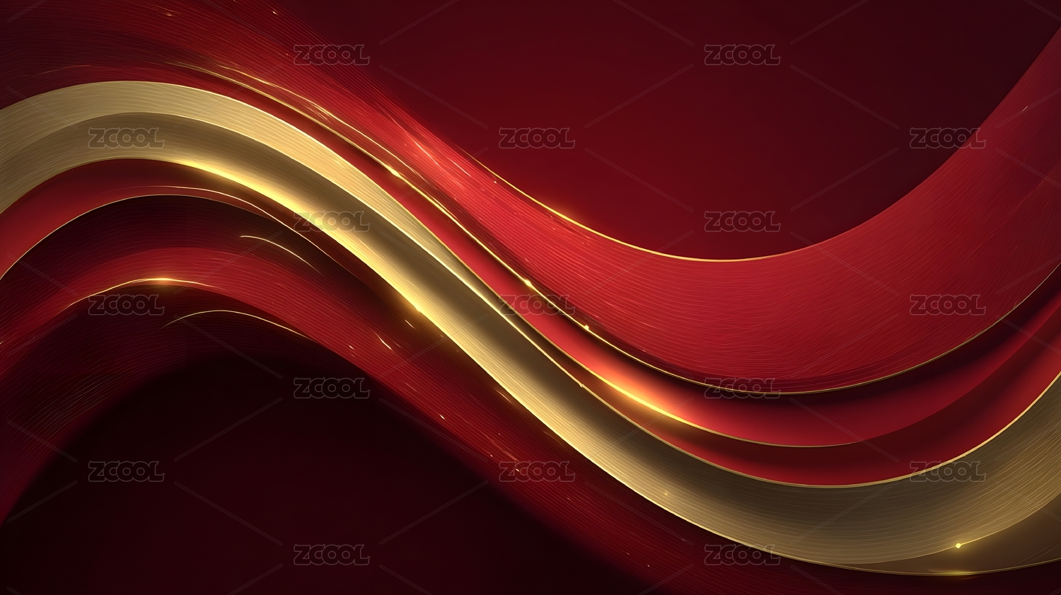 红色波浪与金色线条抽象背景