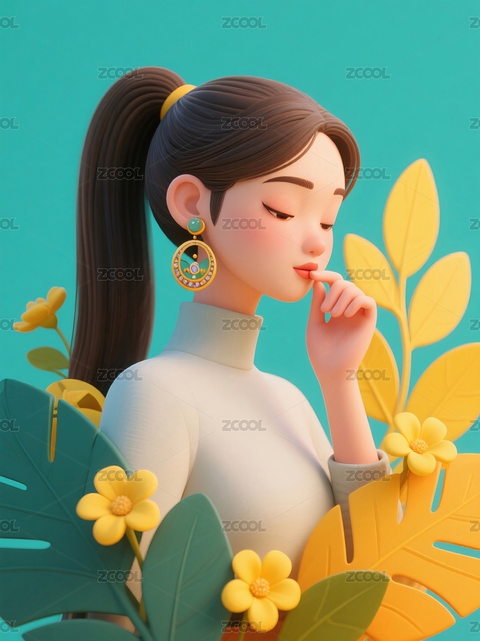 扁平风小清新女孩卡通表情可爱女生角色插画