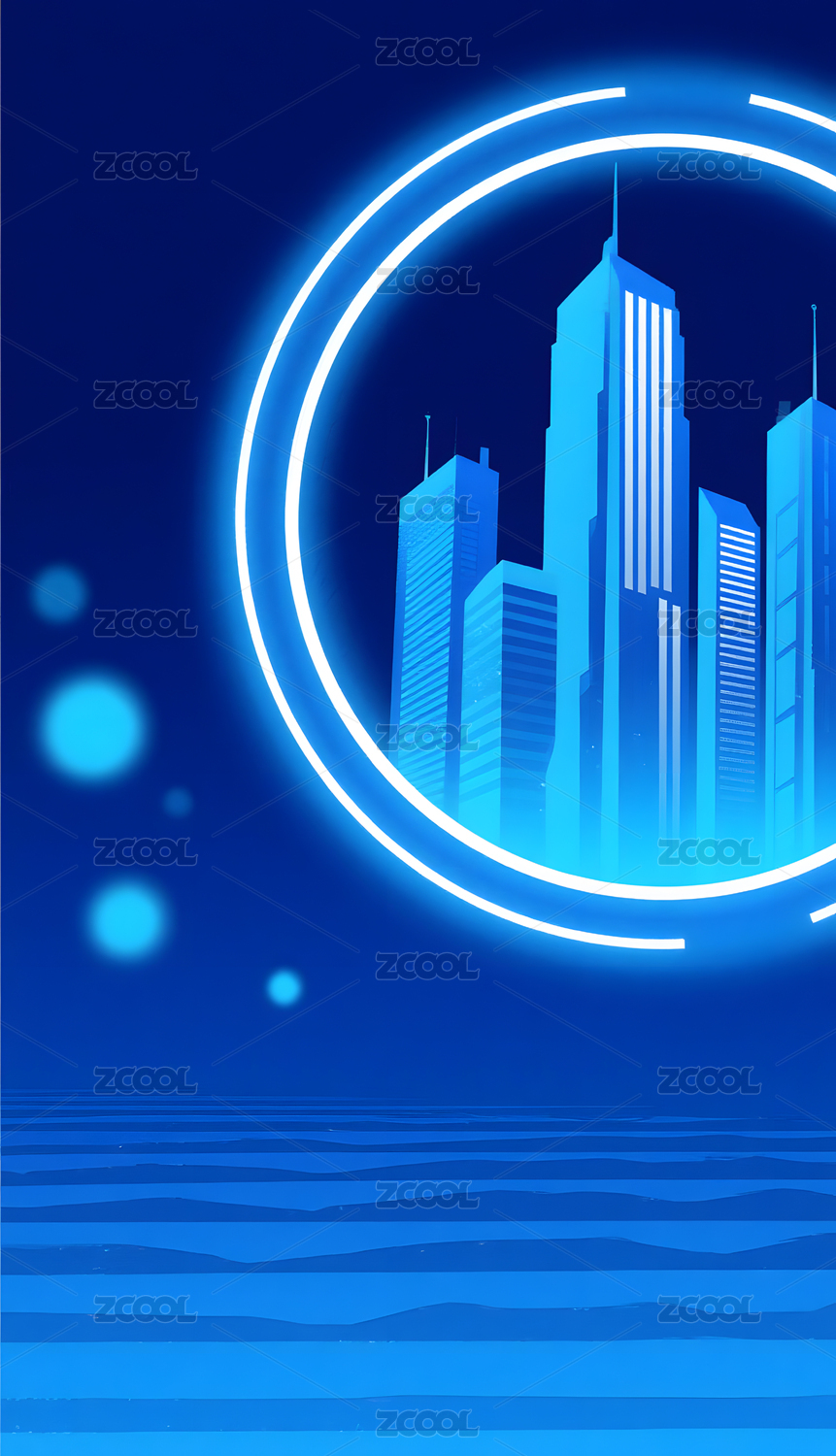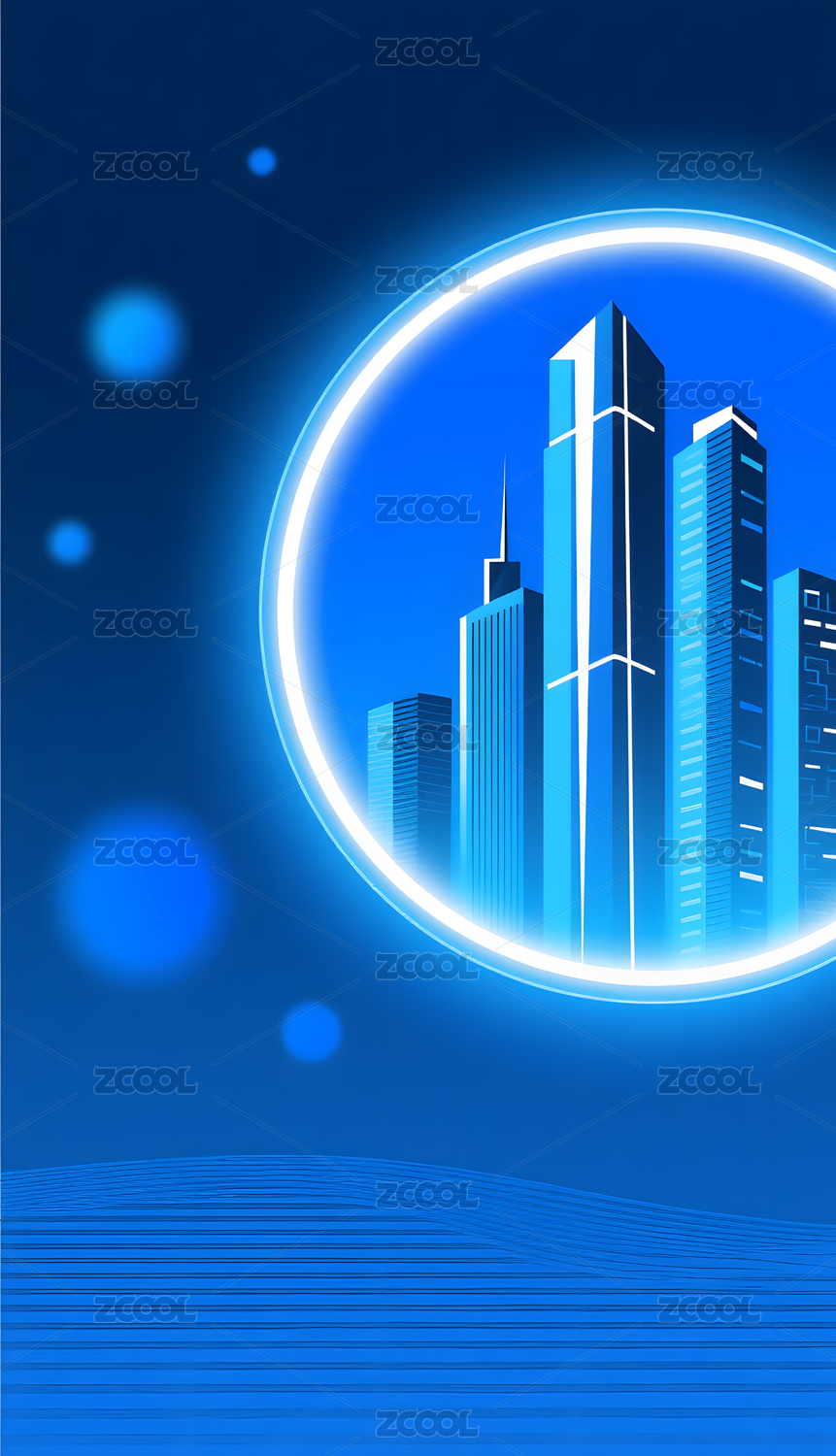 蓝色城市天际线科技建筑