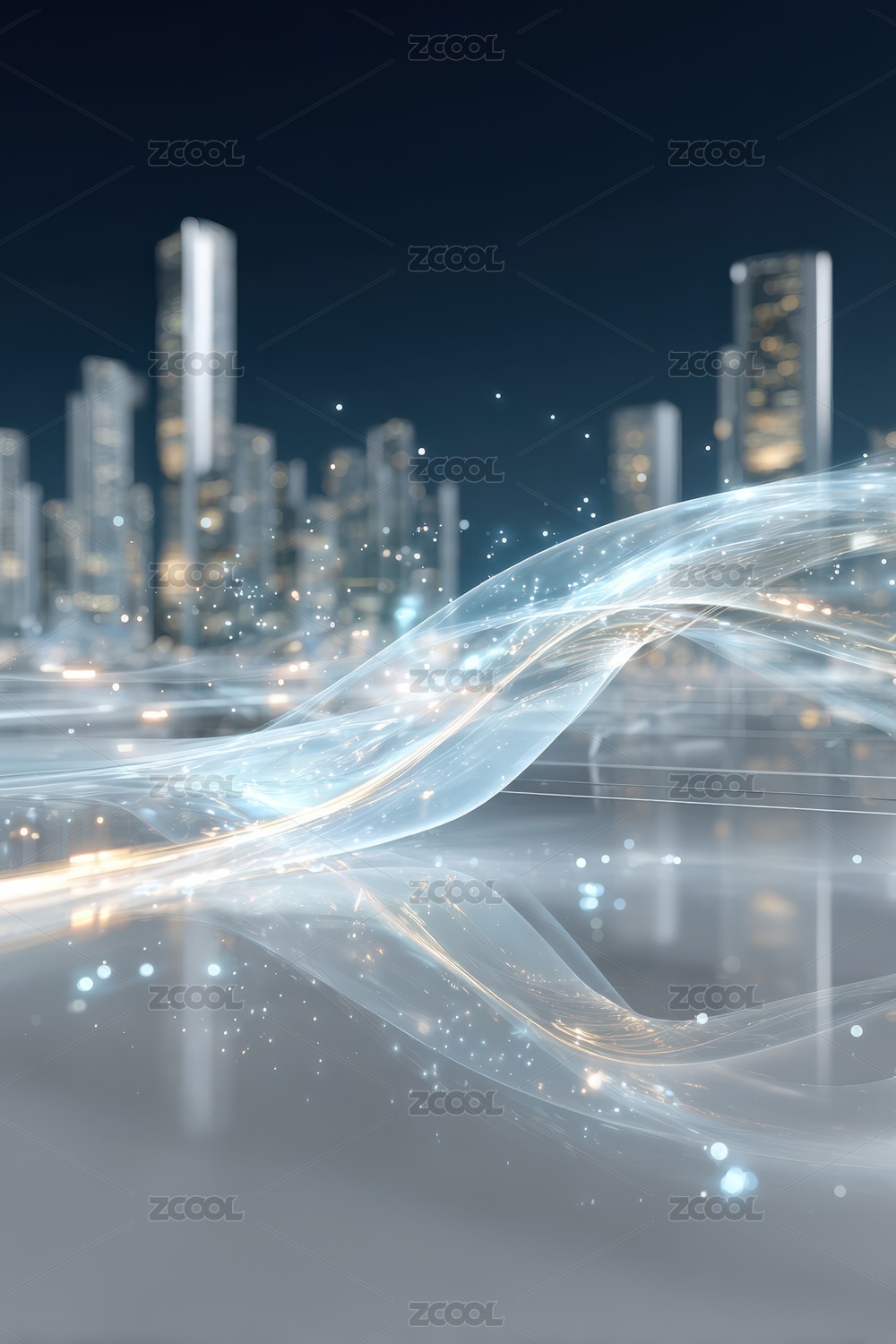 未来城市夜景与光流交错