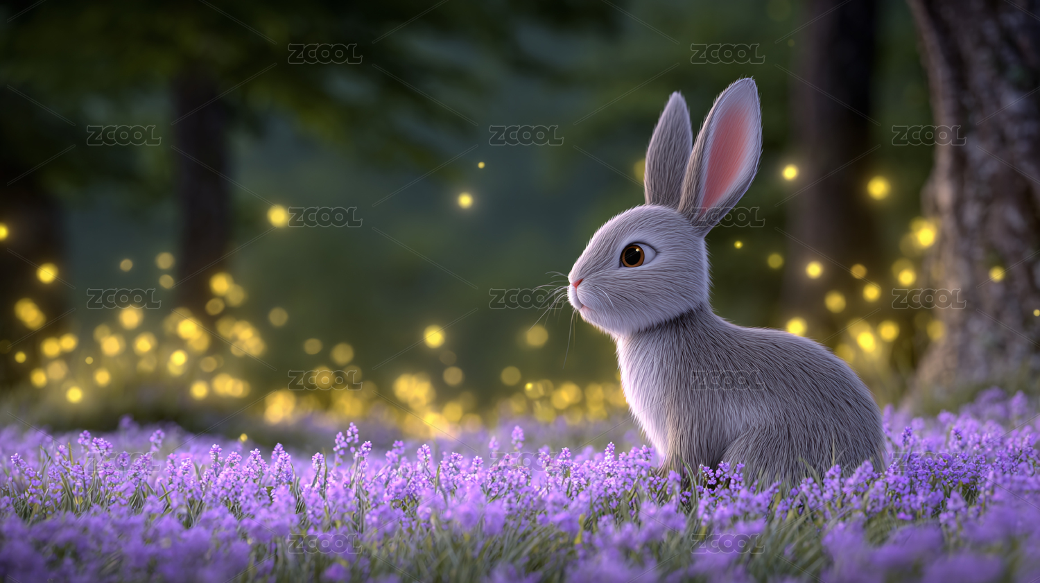 粉色兔子可爱唯美野生动物3D卡通插画壁纸