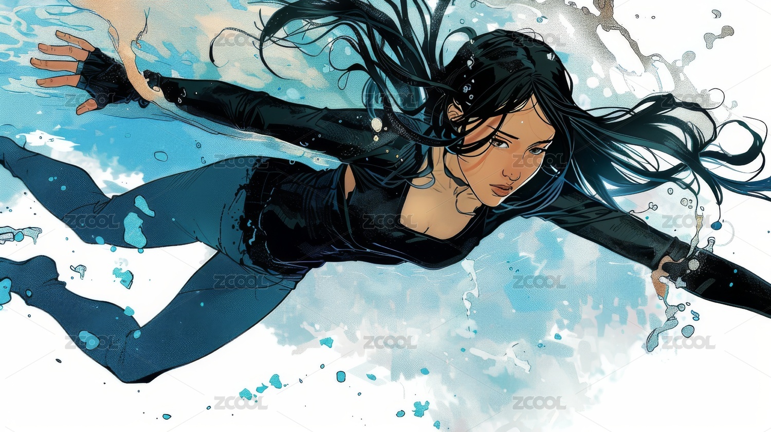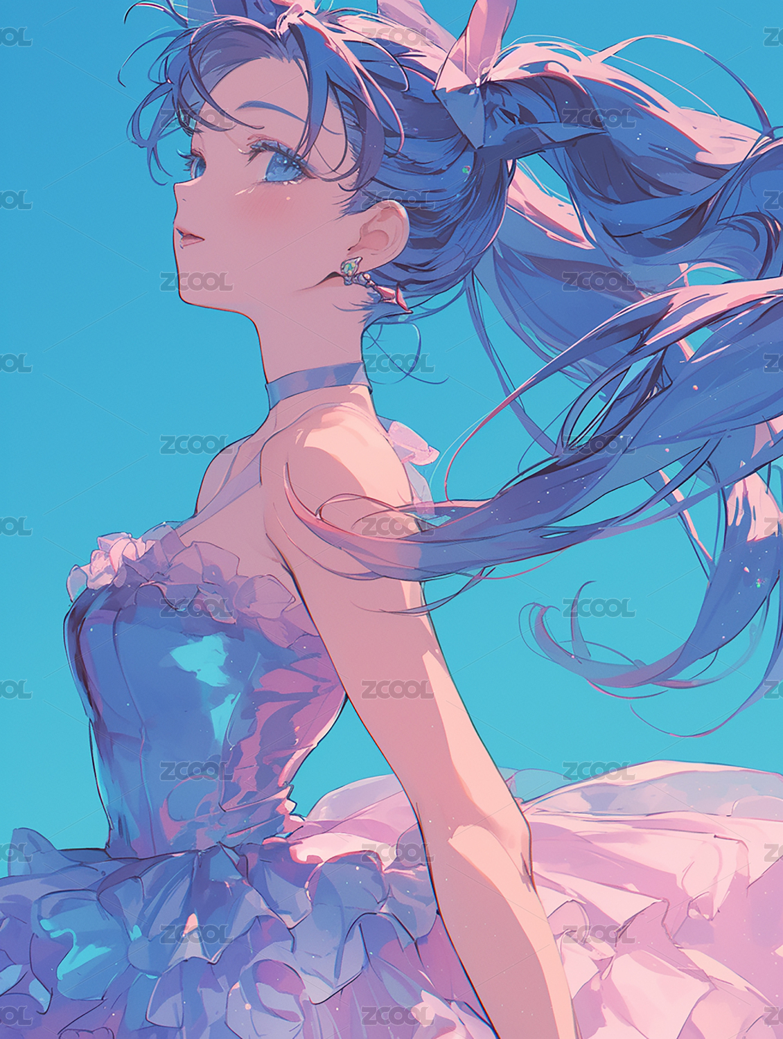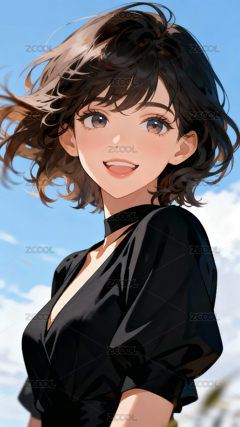 动漫,黑发,女子,侧影,黑色,上衣,深色,长裙,动漫风,神秘