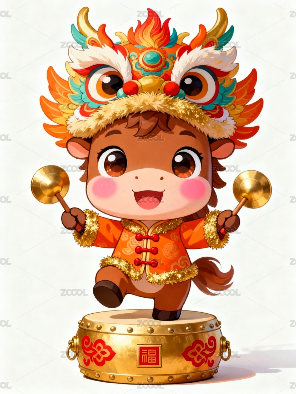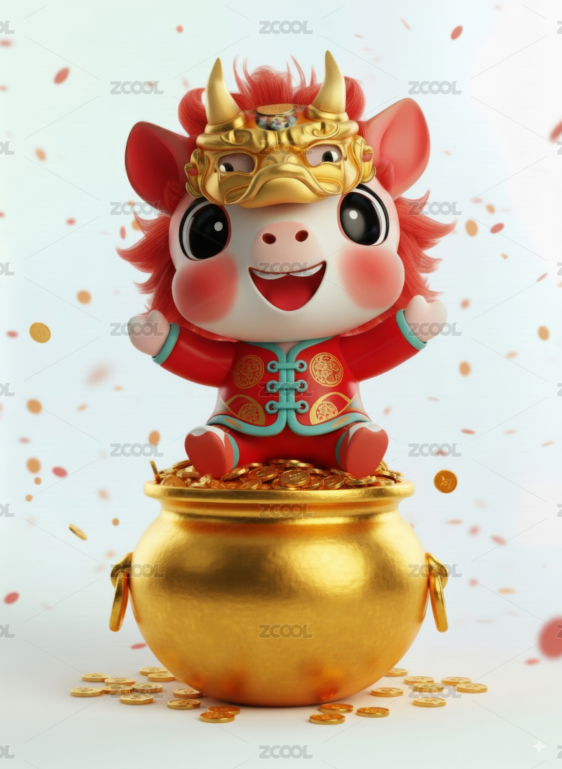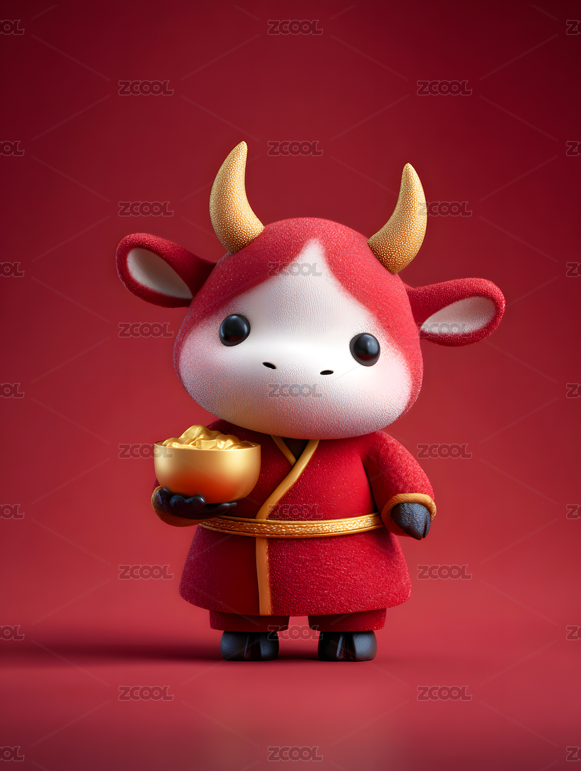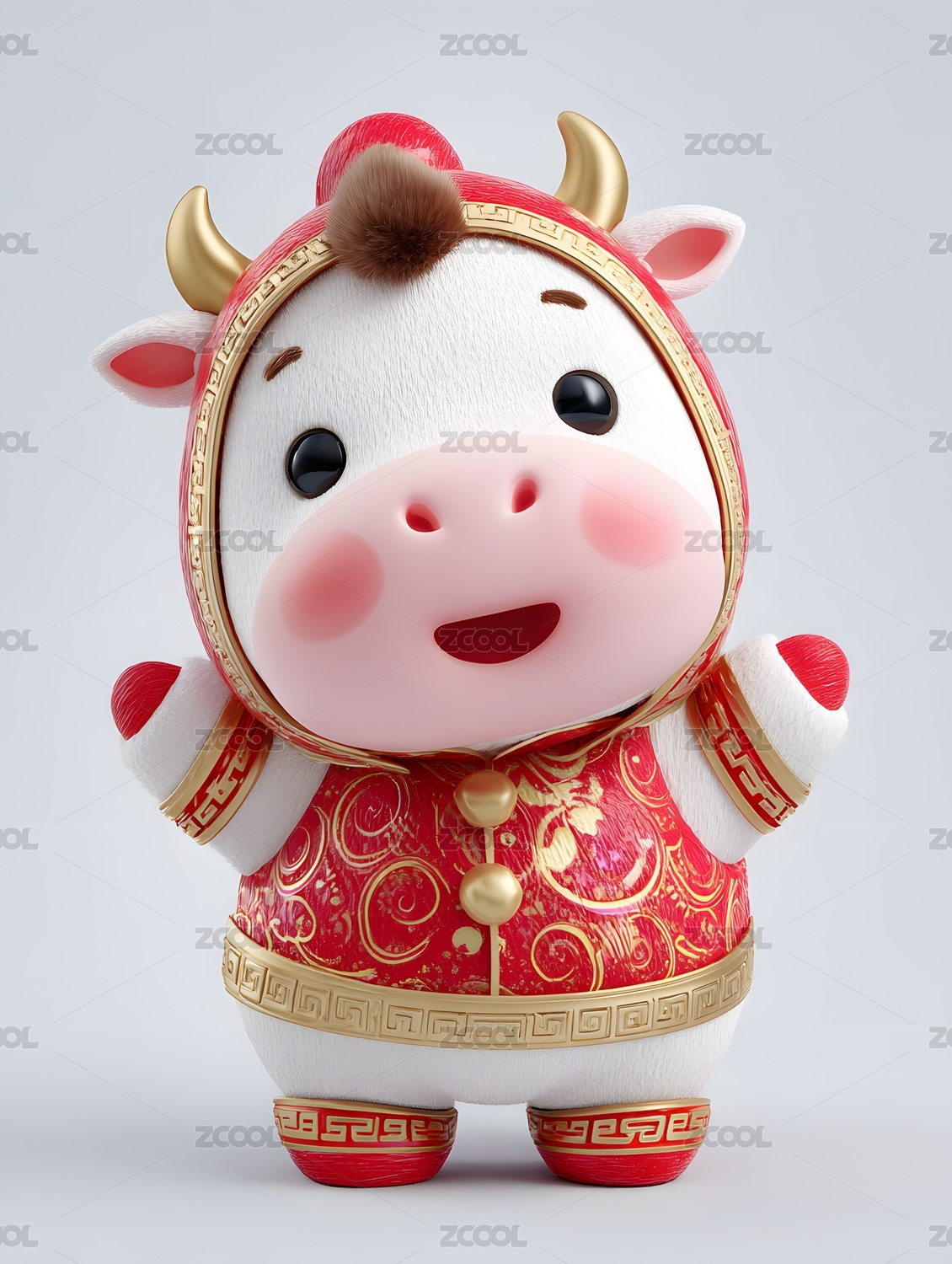 新年卡通萌牛玩偶红袍金纹生肖牛年贺岁摆件