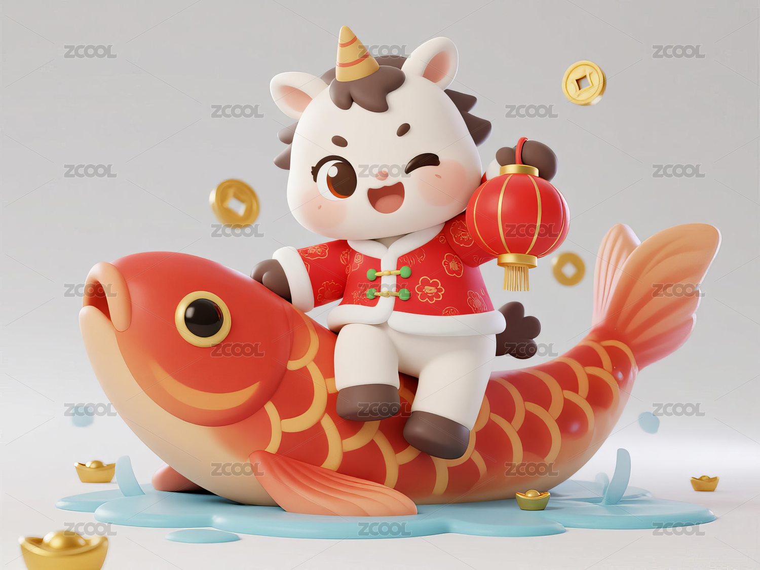 卡通,喜庆,吉祥,红色,节日,可爱,庆祝,装饰,欢乐,3D