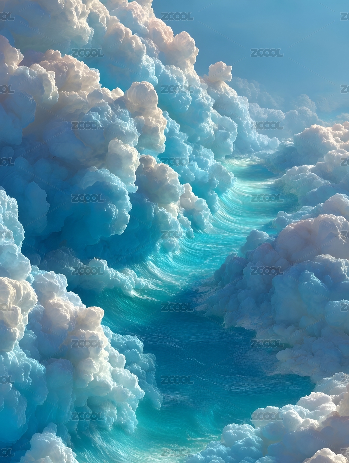 梦幻,云朵,光影,水面,光点,波浪,透明,折射