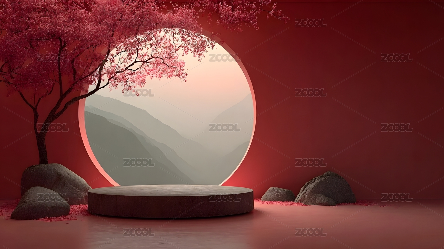 花瓣,粉色,花枝,花海,背景,平台,台阶,自然,树木,风景