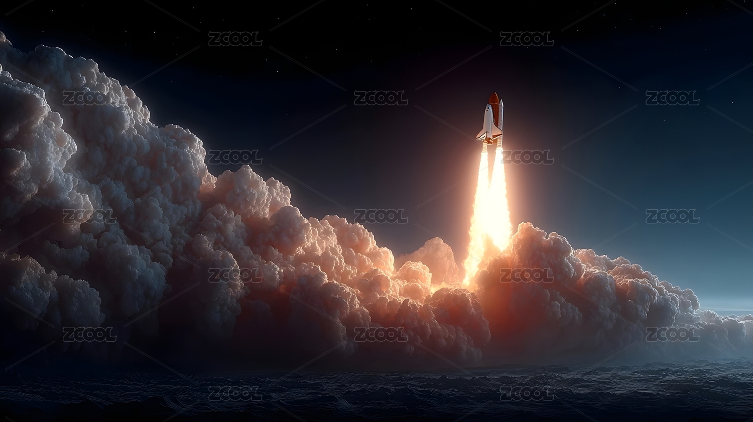 夜空火箭发射升空