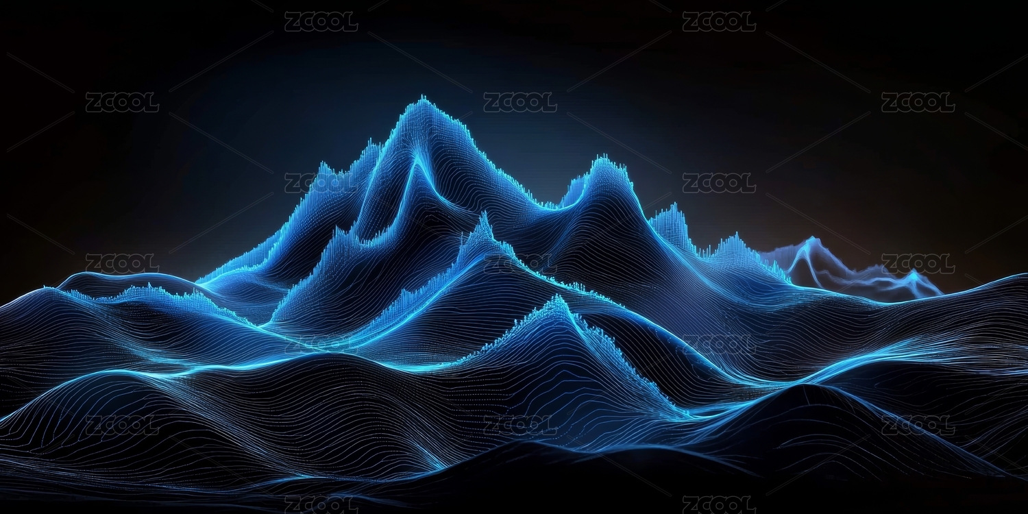蓝色光影下的抽象山脉