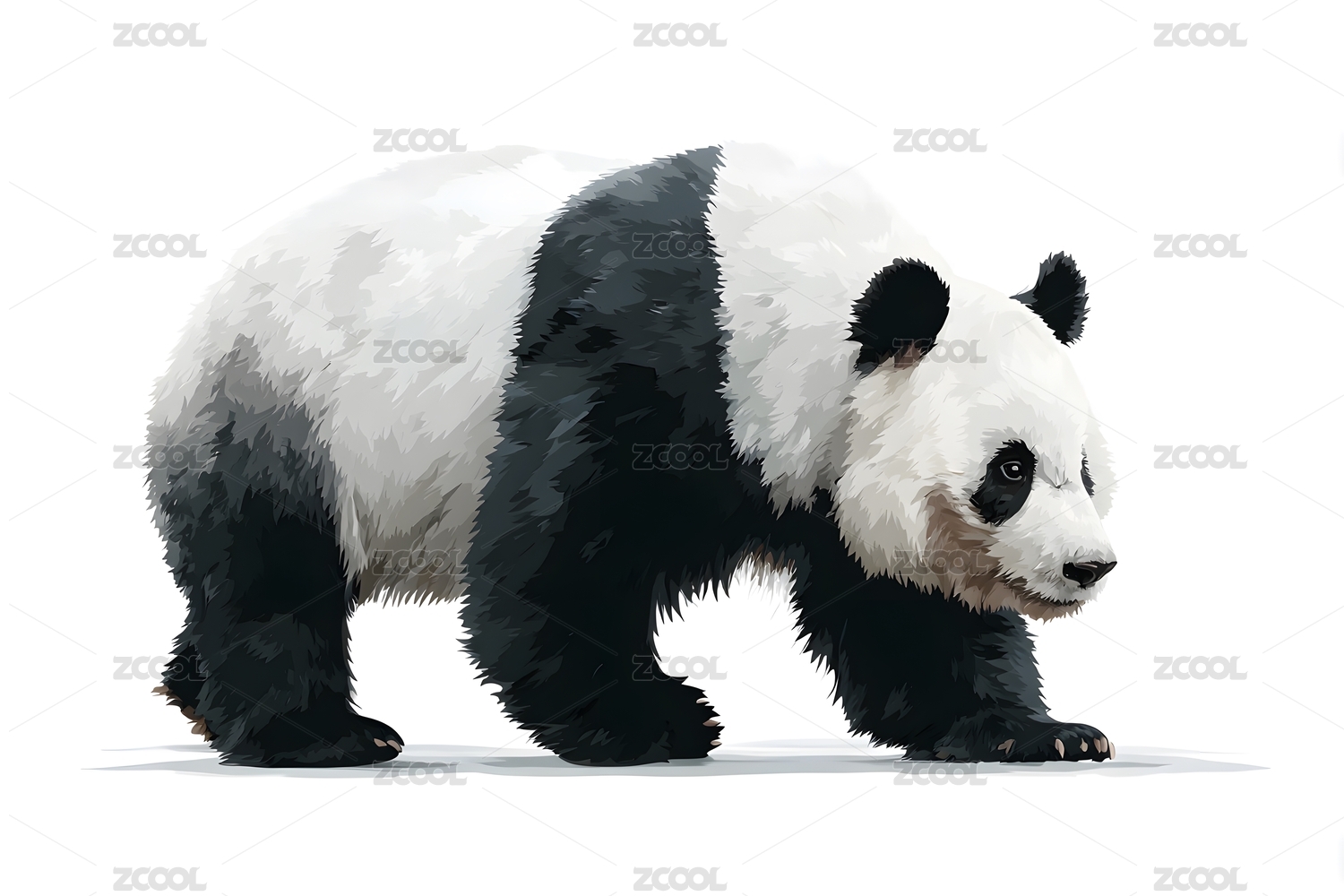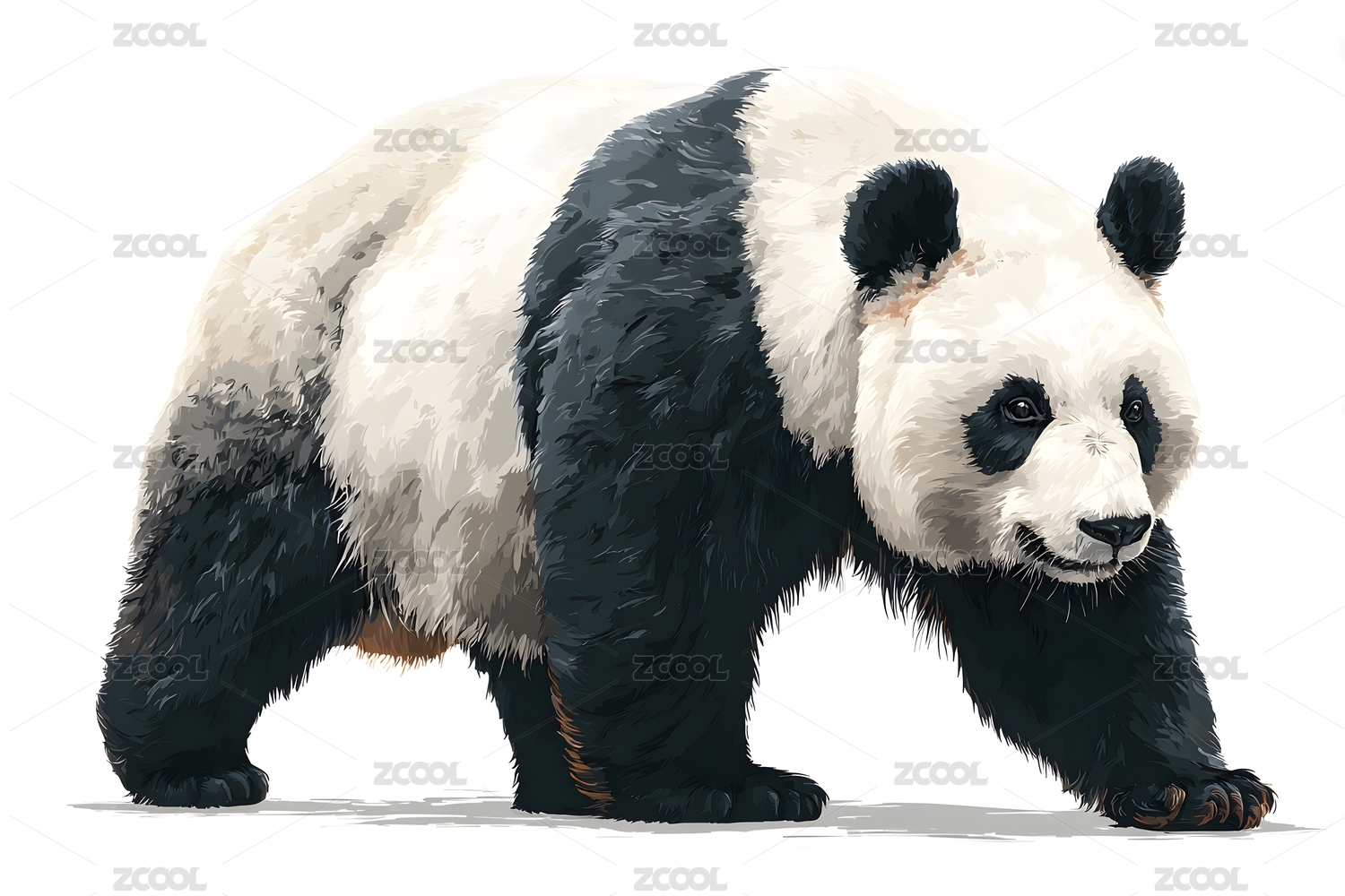 悠闲漫步的大熊猫黑白写实画