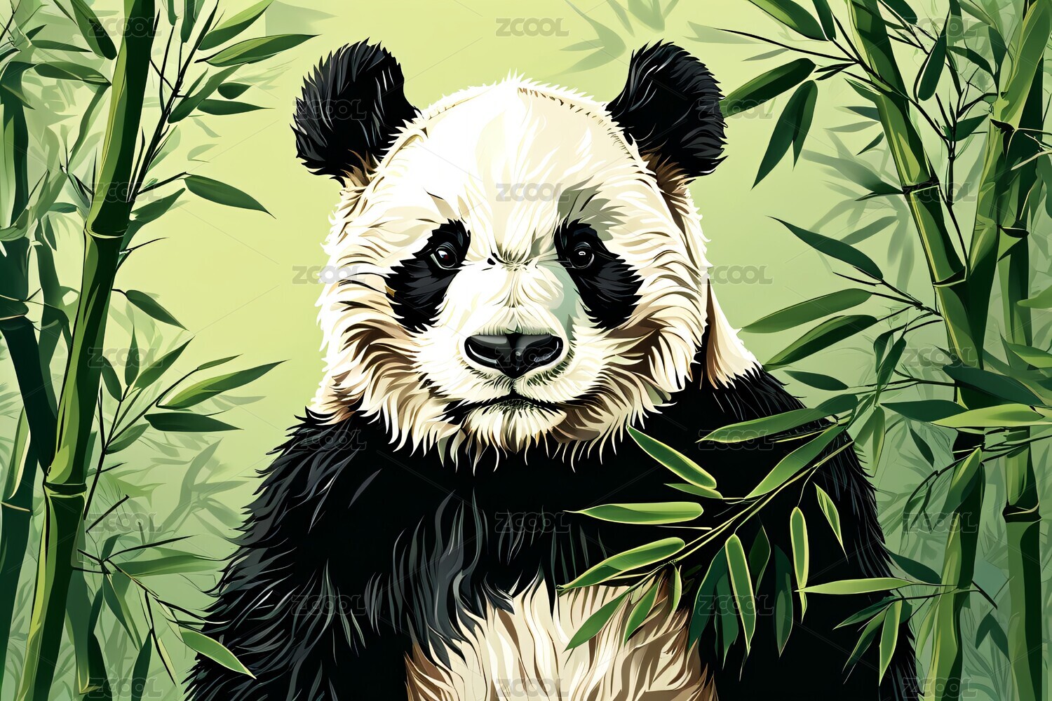 一个大熊猫在竹林中的插画