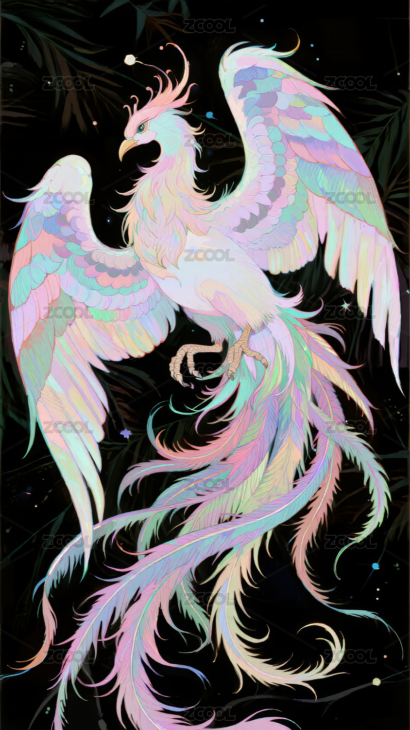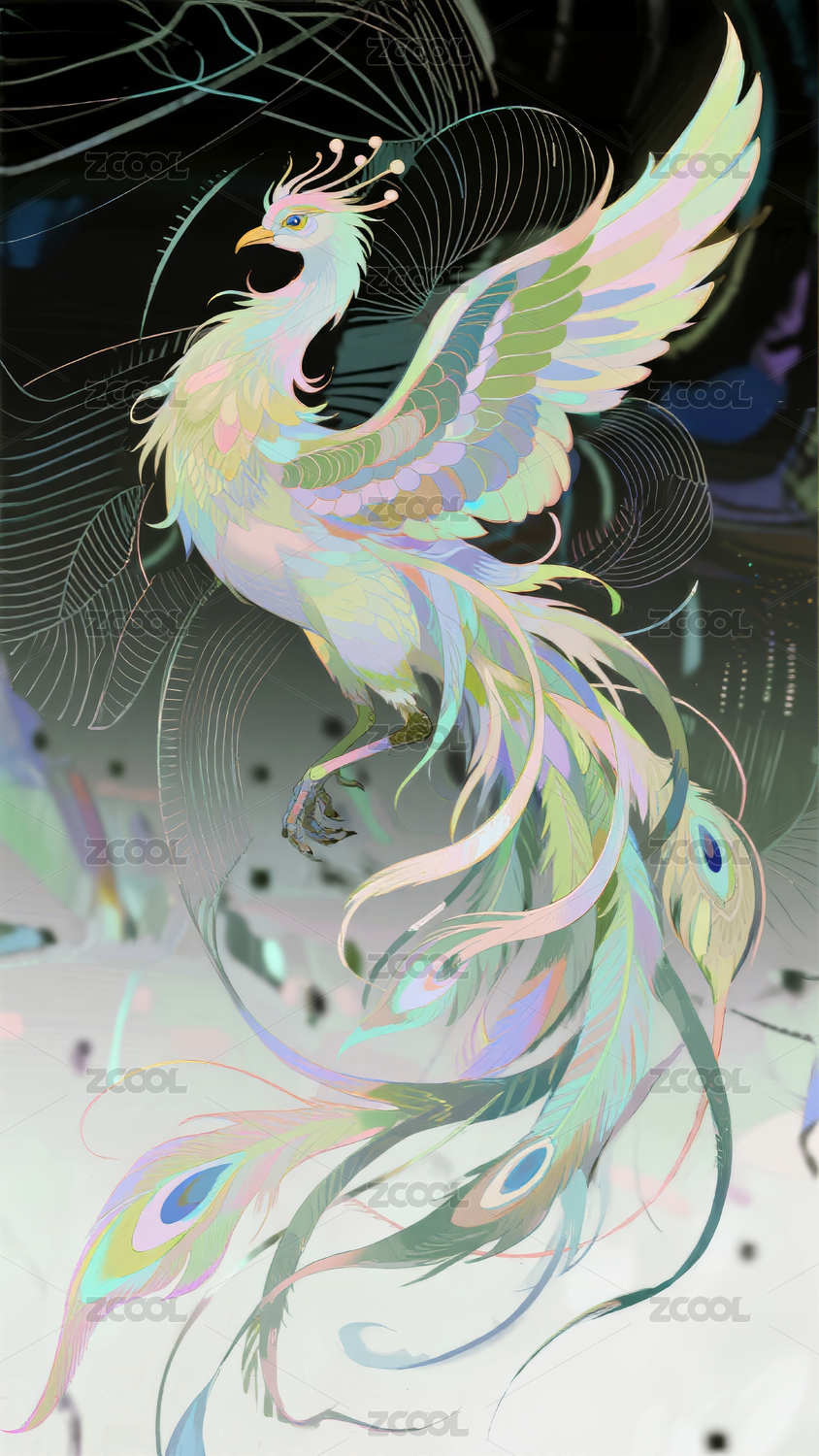 国潮动物凤凰展翅中式传统吉祥纹样色彩明亮
